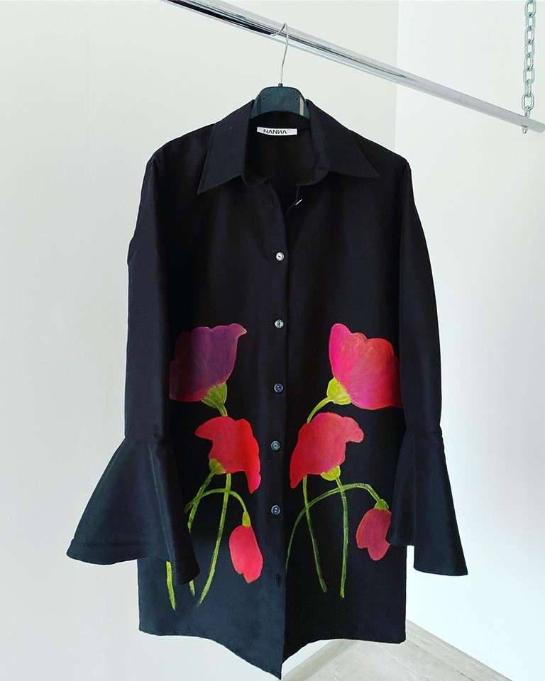 Camasa este pictata manual.
