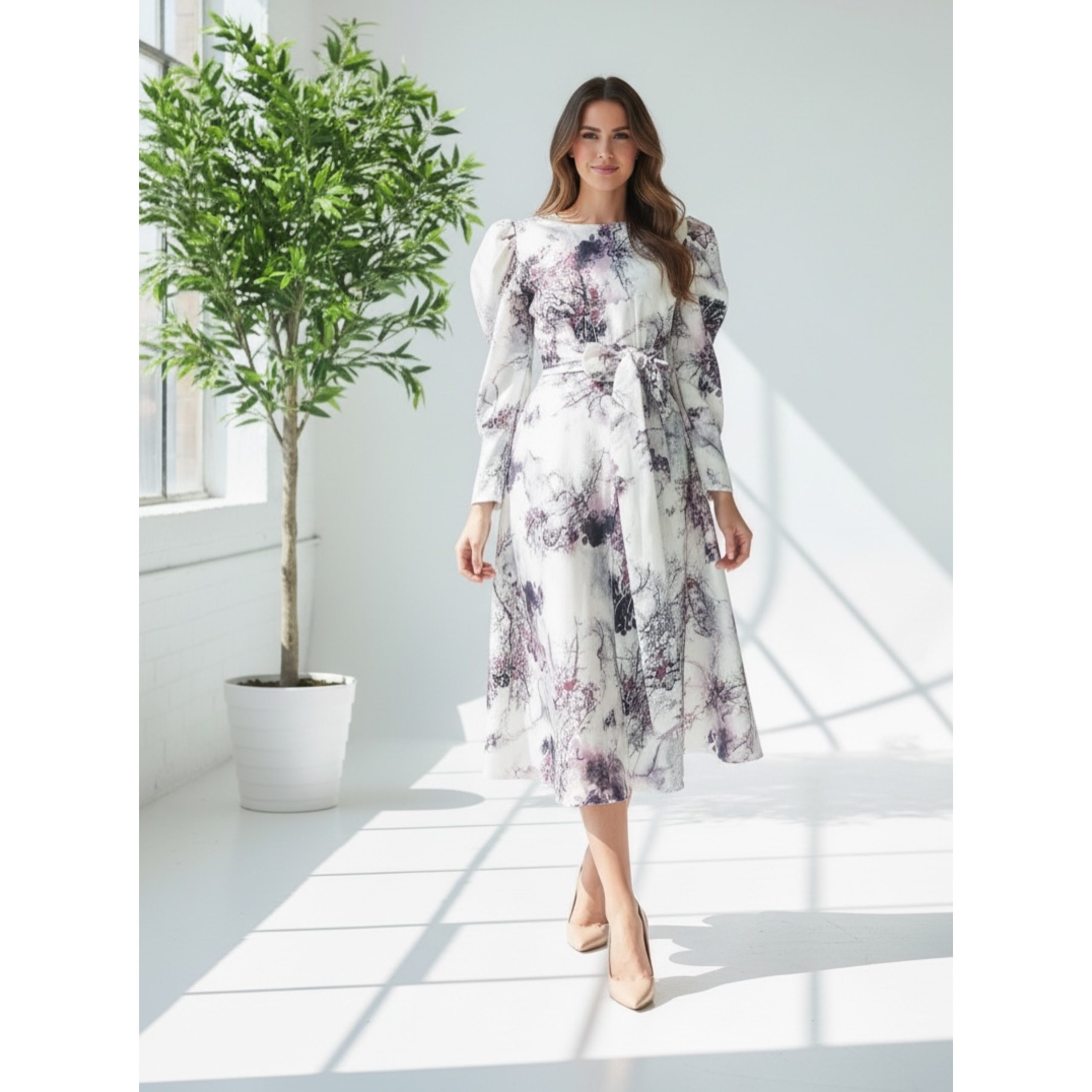 Rochie are lungime standard 115cm( rochia se poate face mai lunga sau mai scurta, cu maneci trei sferturi sau lungi, daca doritu personalizare, mentionati acest aspect in sectiunea Observatii, la finalizarea comenzii). Are fermoar lateral si cordon dublu detasabil.