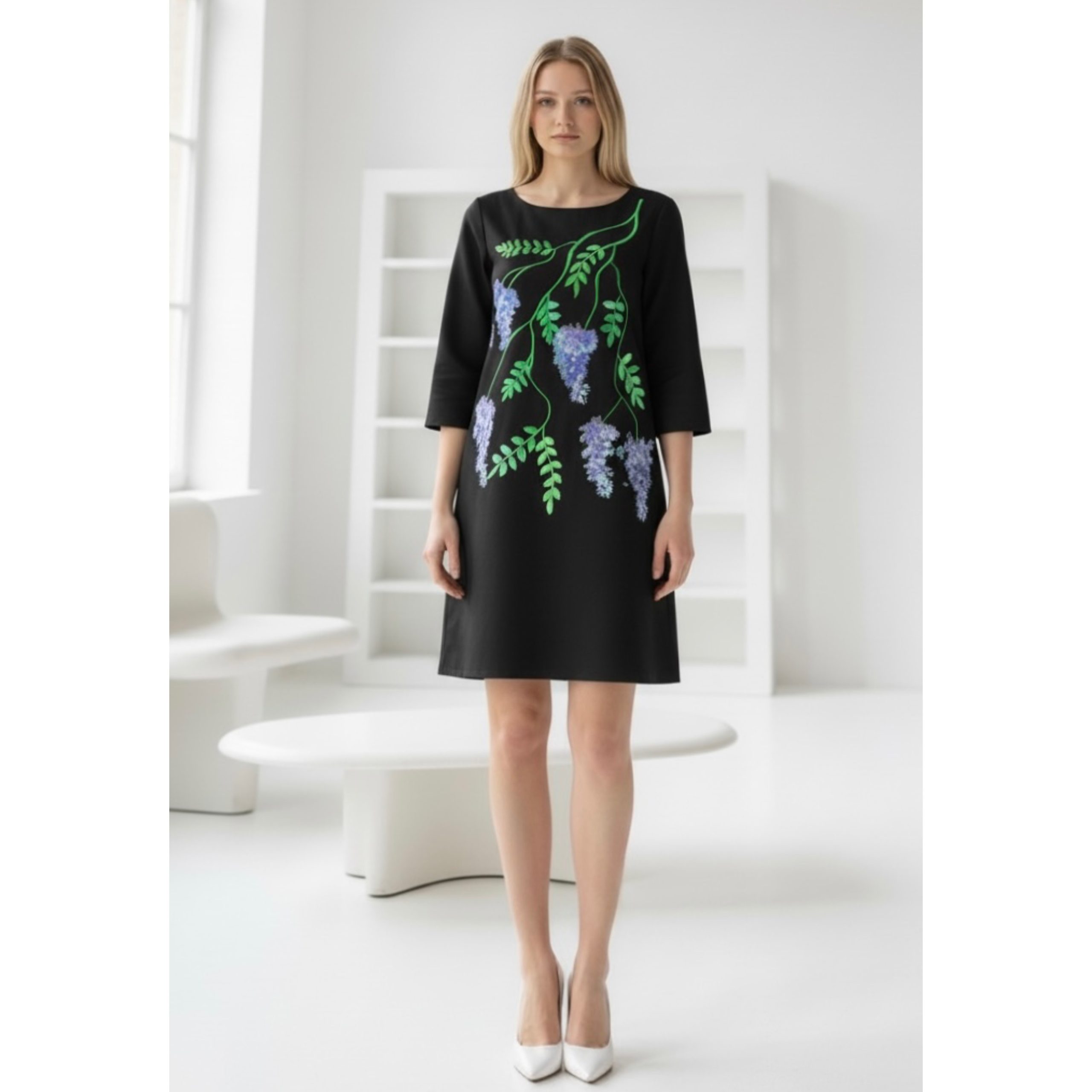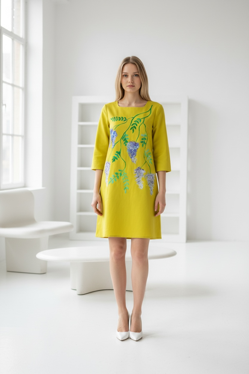 Rochia este pictata manual si are croi in A.