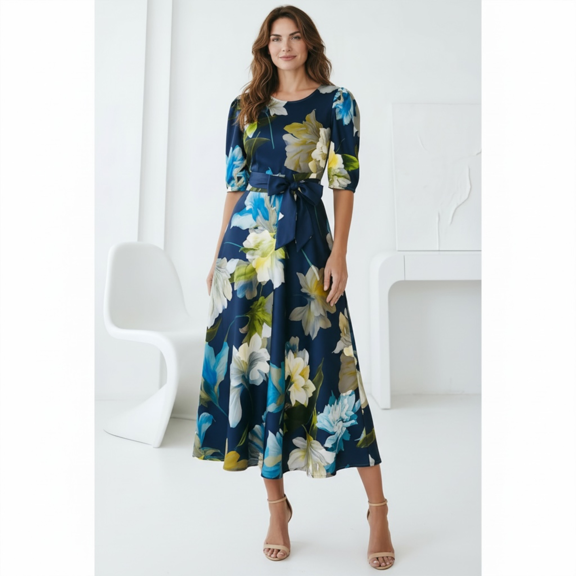 Rochia are lungime standard 115 cm.  Materialul este plin si elastic. Cordonul este detasabil.
