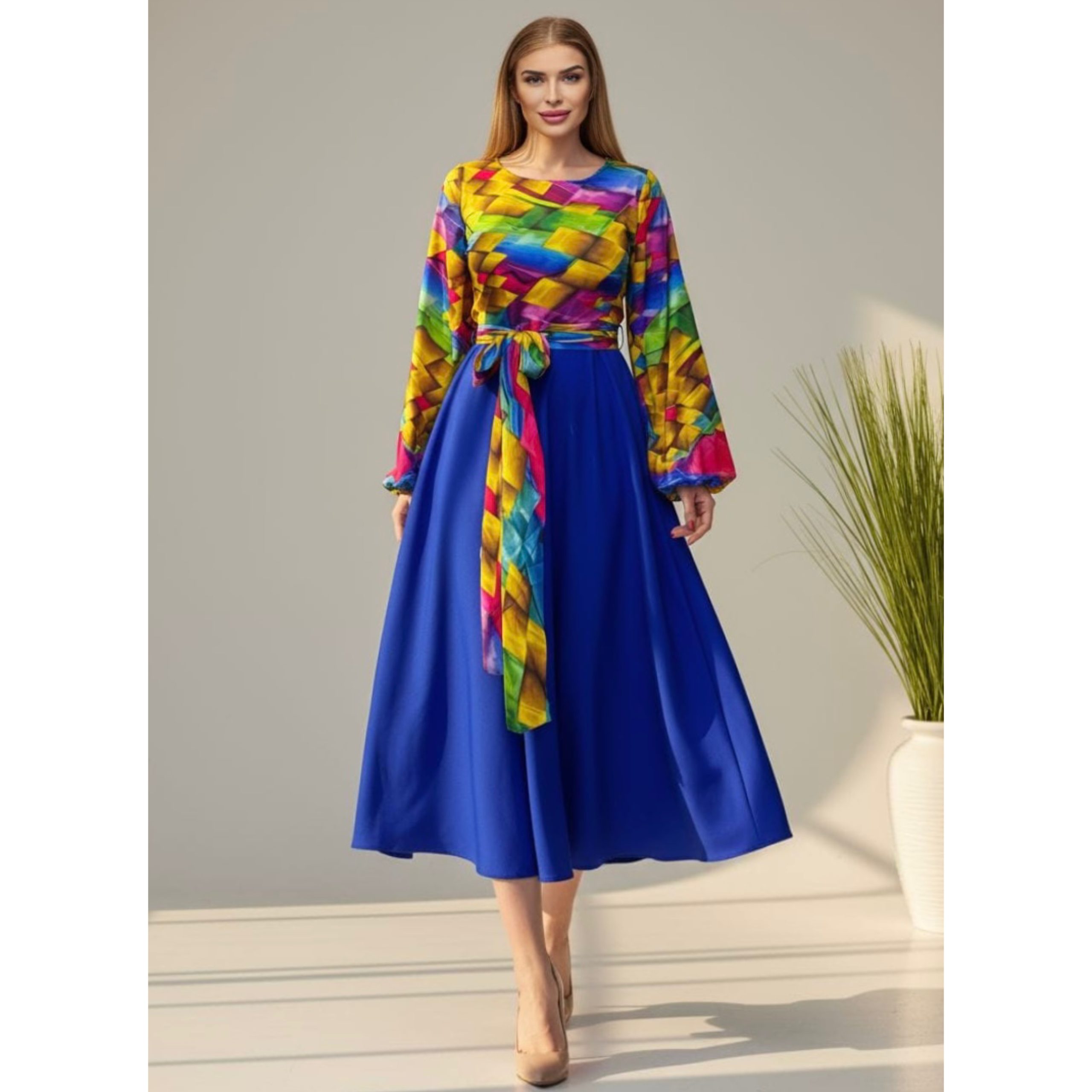 Rochie are lungime standard 115cm( rochia se poate face mai lunga sau mai scurta, cu maneci trei sferturi sau lungi, daca doritu personalizare, mentionati acest aspect in sectiunea Observatii, la finalizarea comenzii). Are fermoar lateral si cordon dublu detasabil.