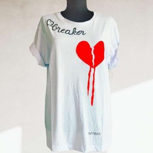 Camasa are un design asimetric. Este prevazuta cu cordon in talie.