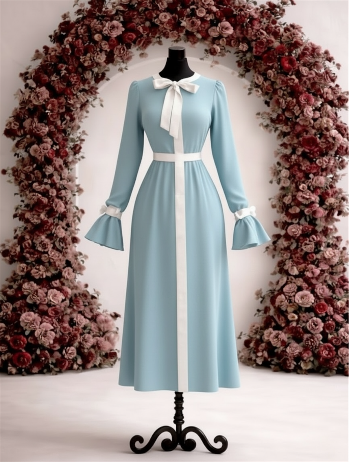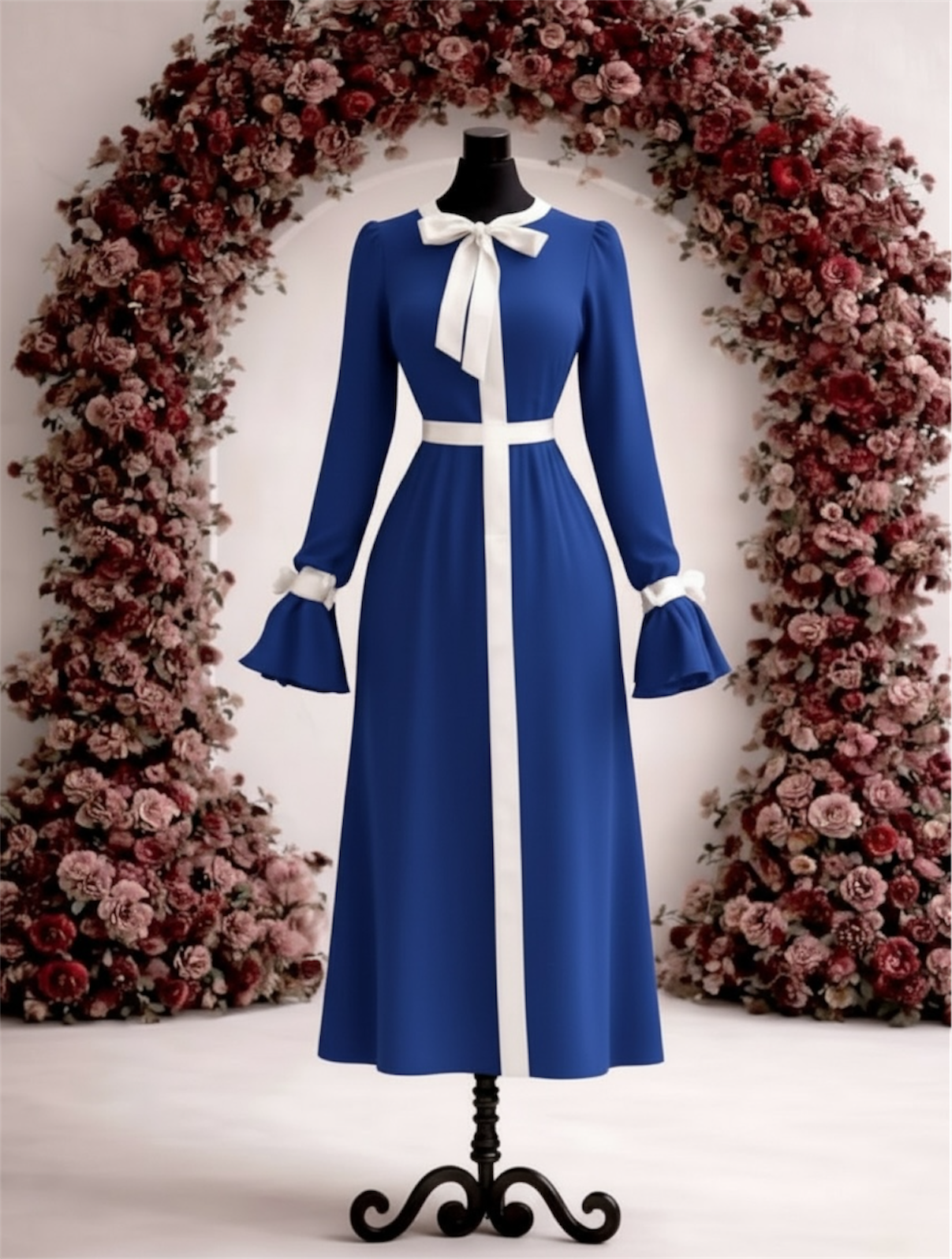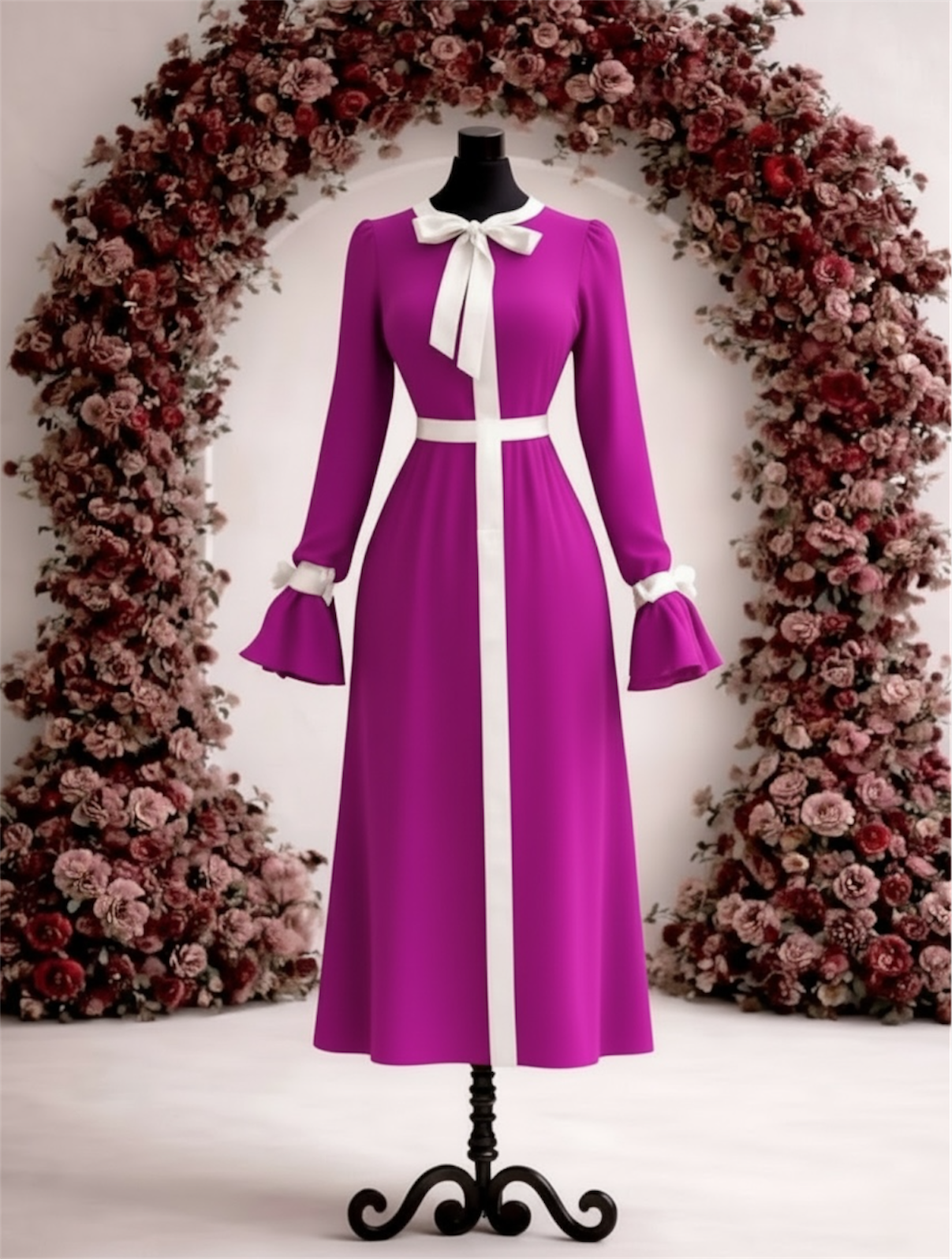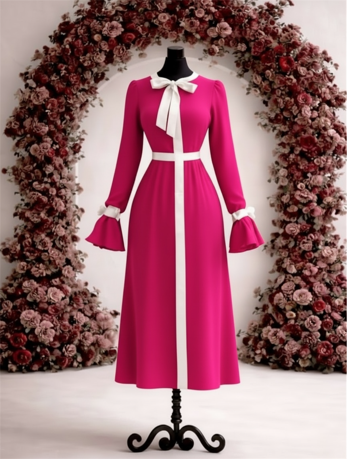 Rochia este confectionata din stofa barbie, material plin, usor elastic, care nu se electrizeaza. Lungime standard aprox 115 cm.