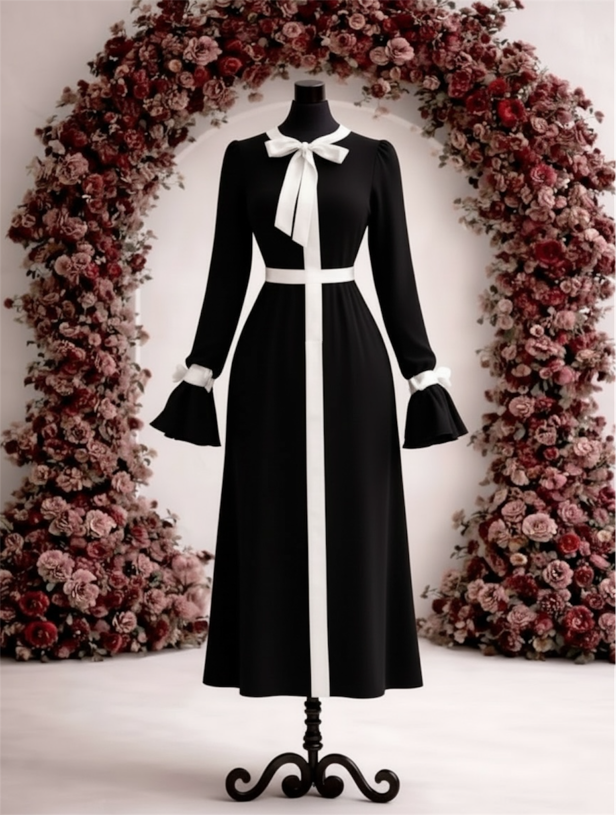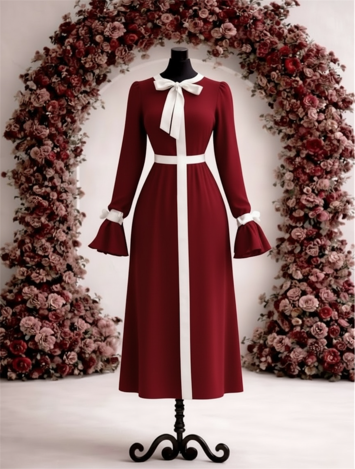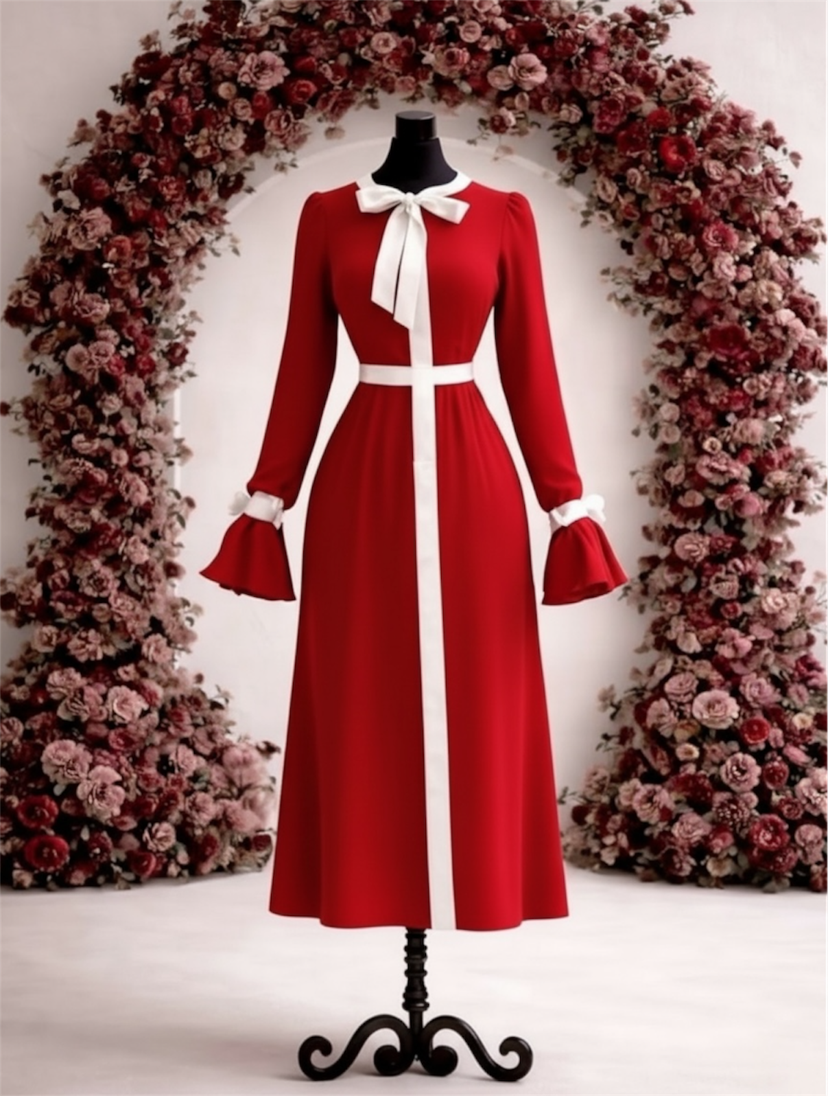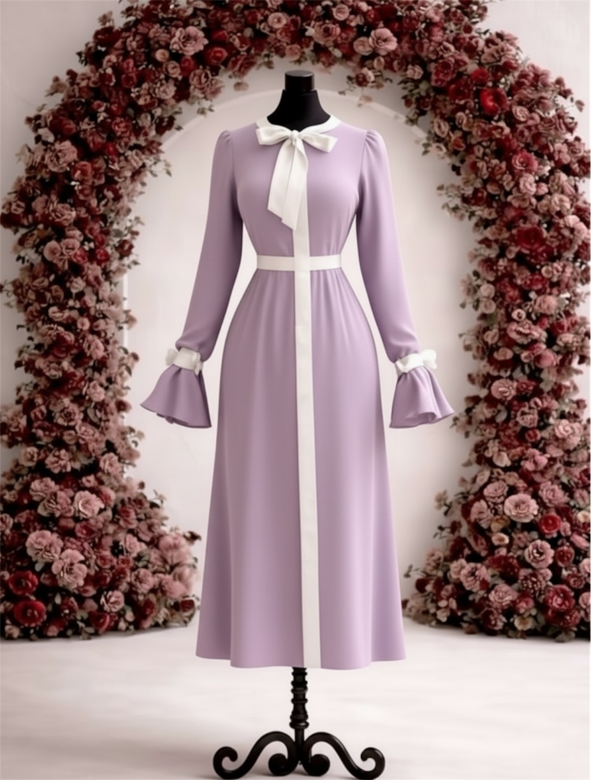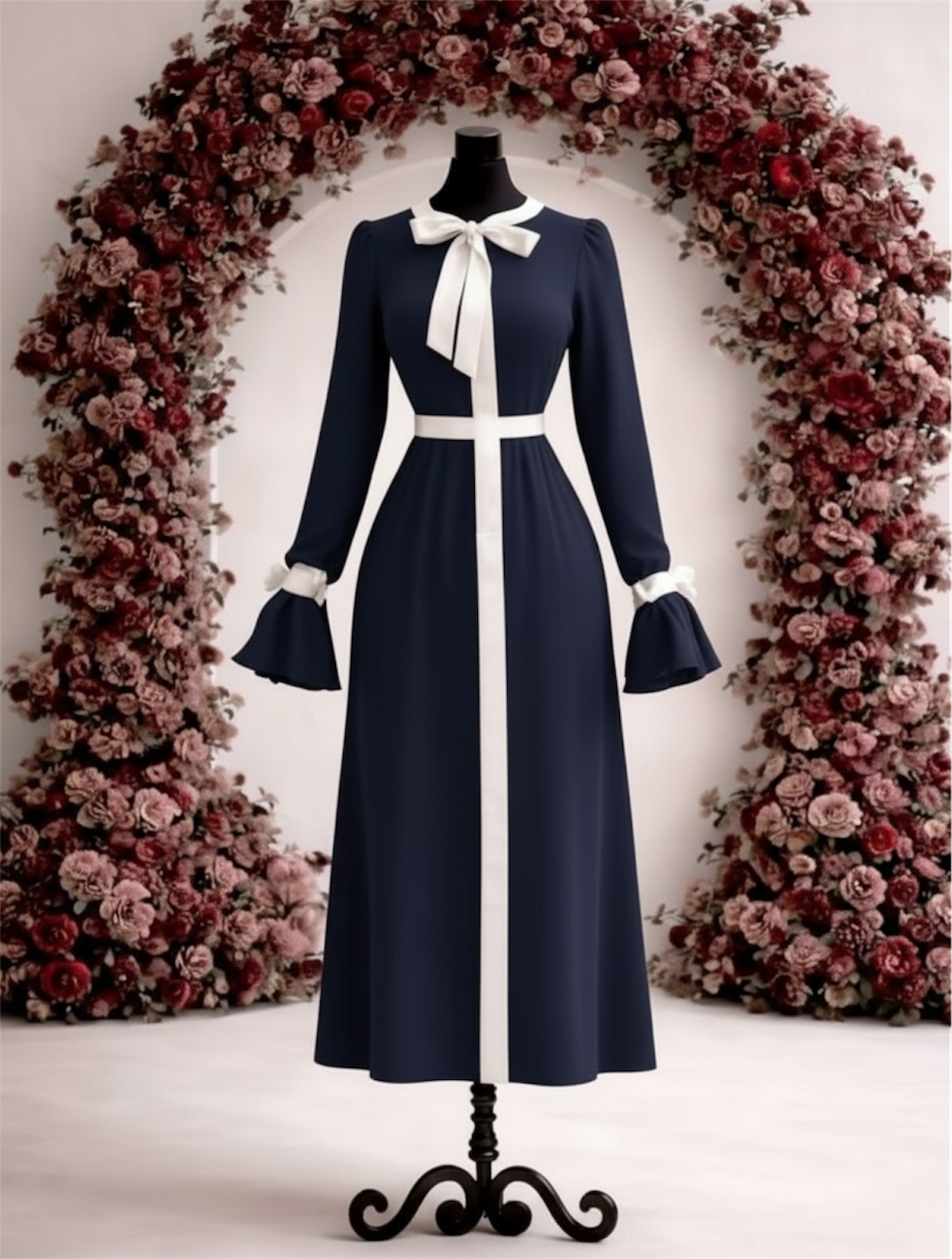 Rochia este confectionata din stofa barbie, material plin, usor elastic, care nu se electrizeaza. Lungime standard aprox 115 cm.