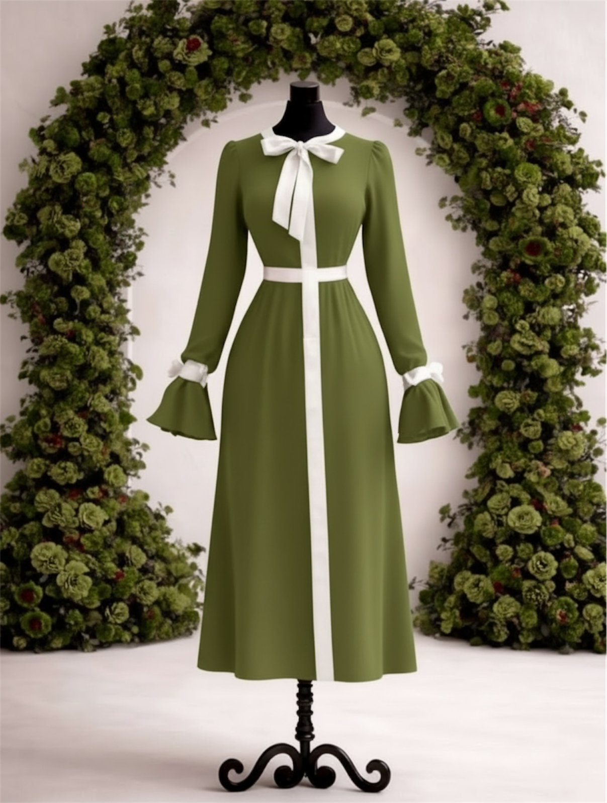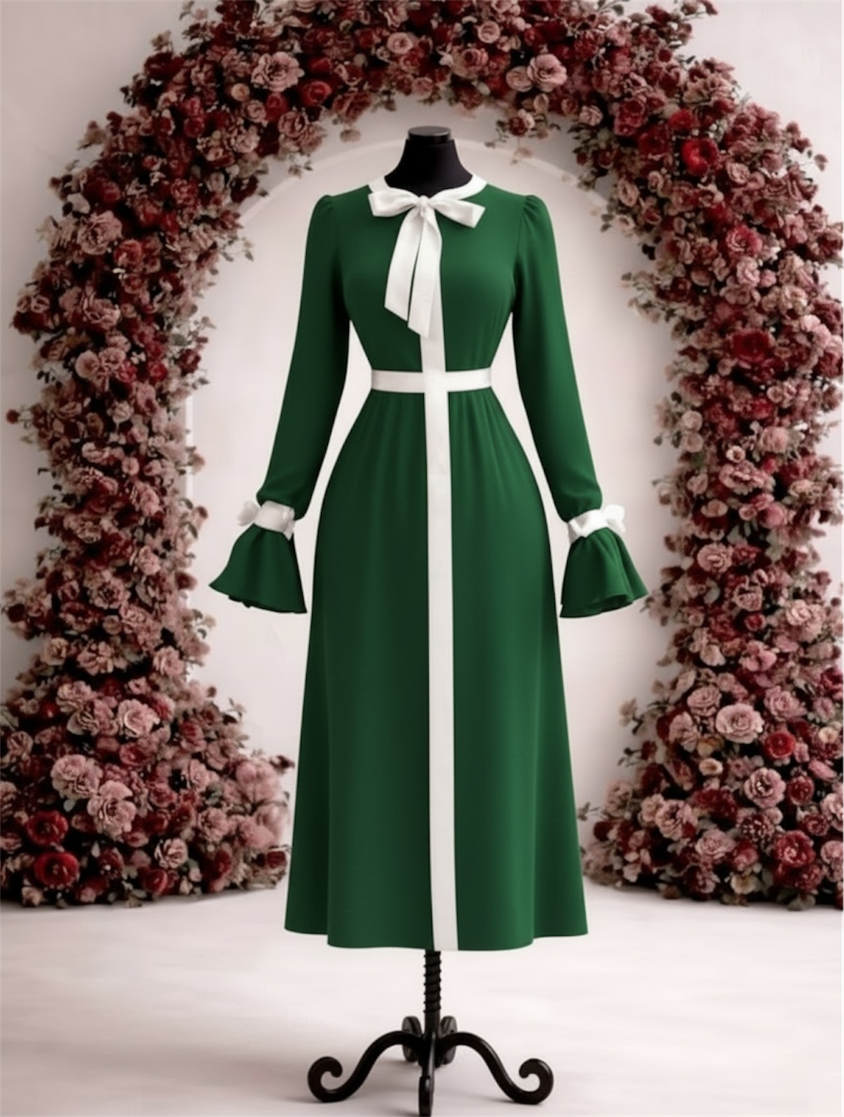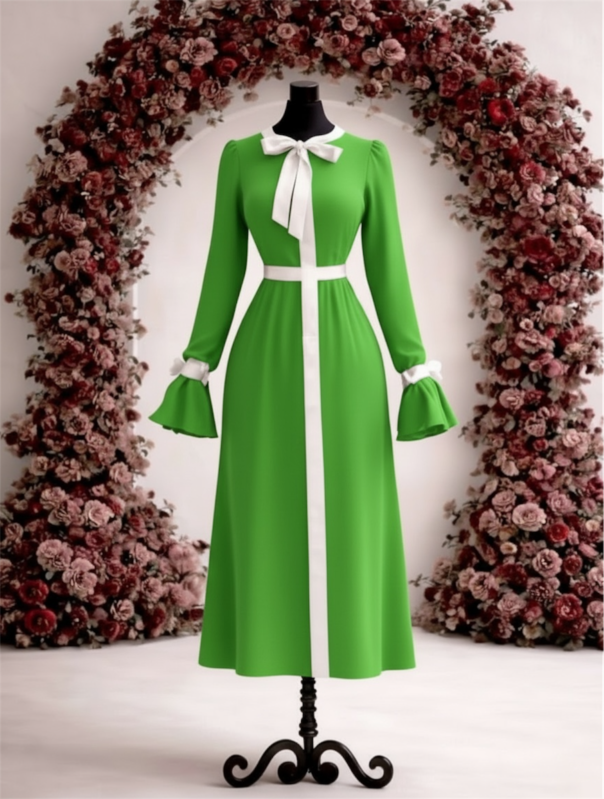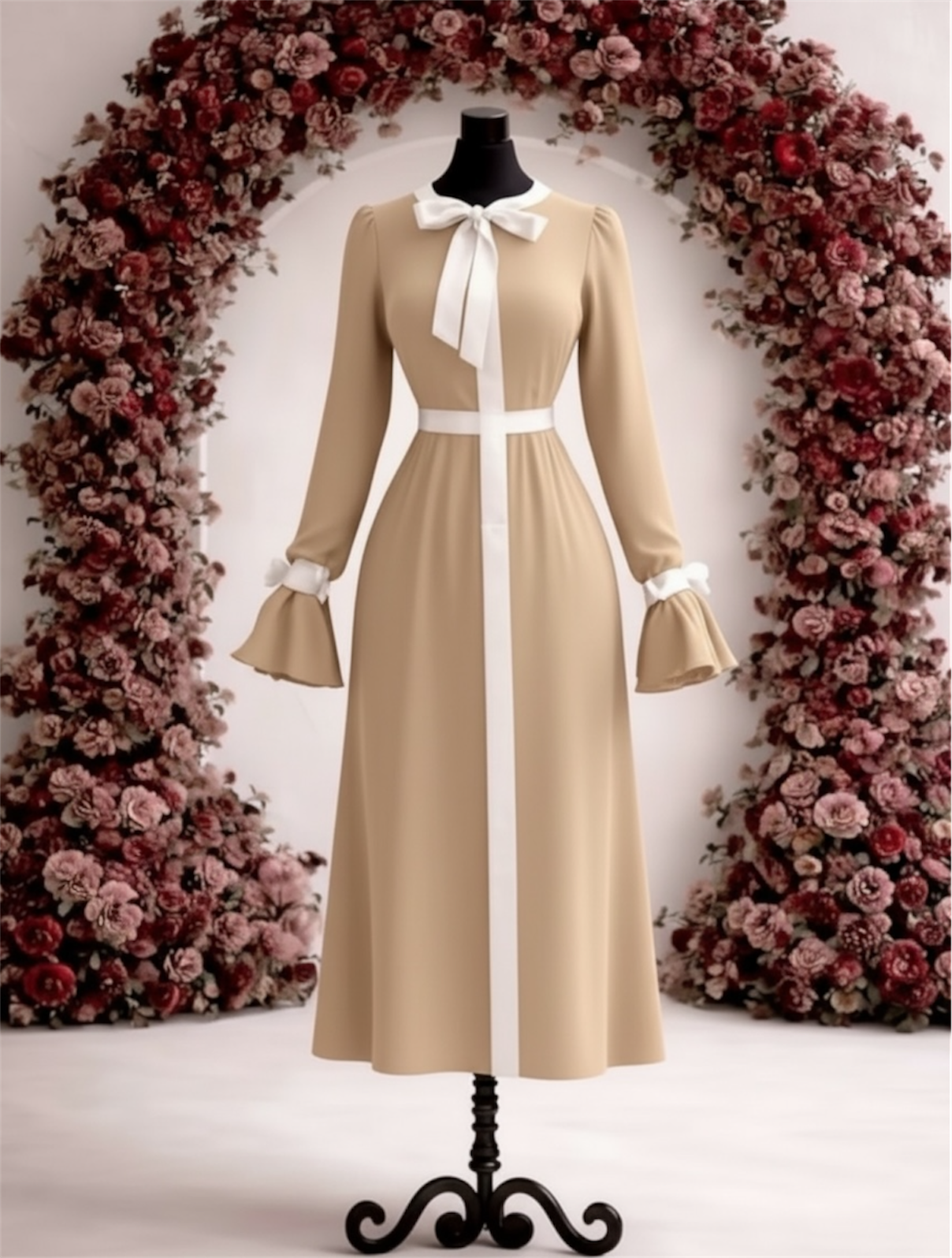 Rochia este confectionata din stofa barbie, material plin, usor elastic, care nu se electrizeaza. Lungime standard aprox 115 cm.