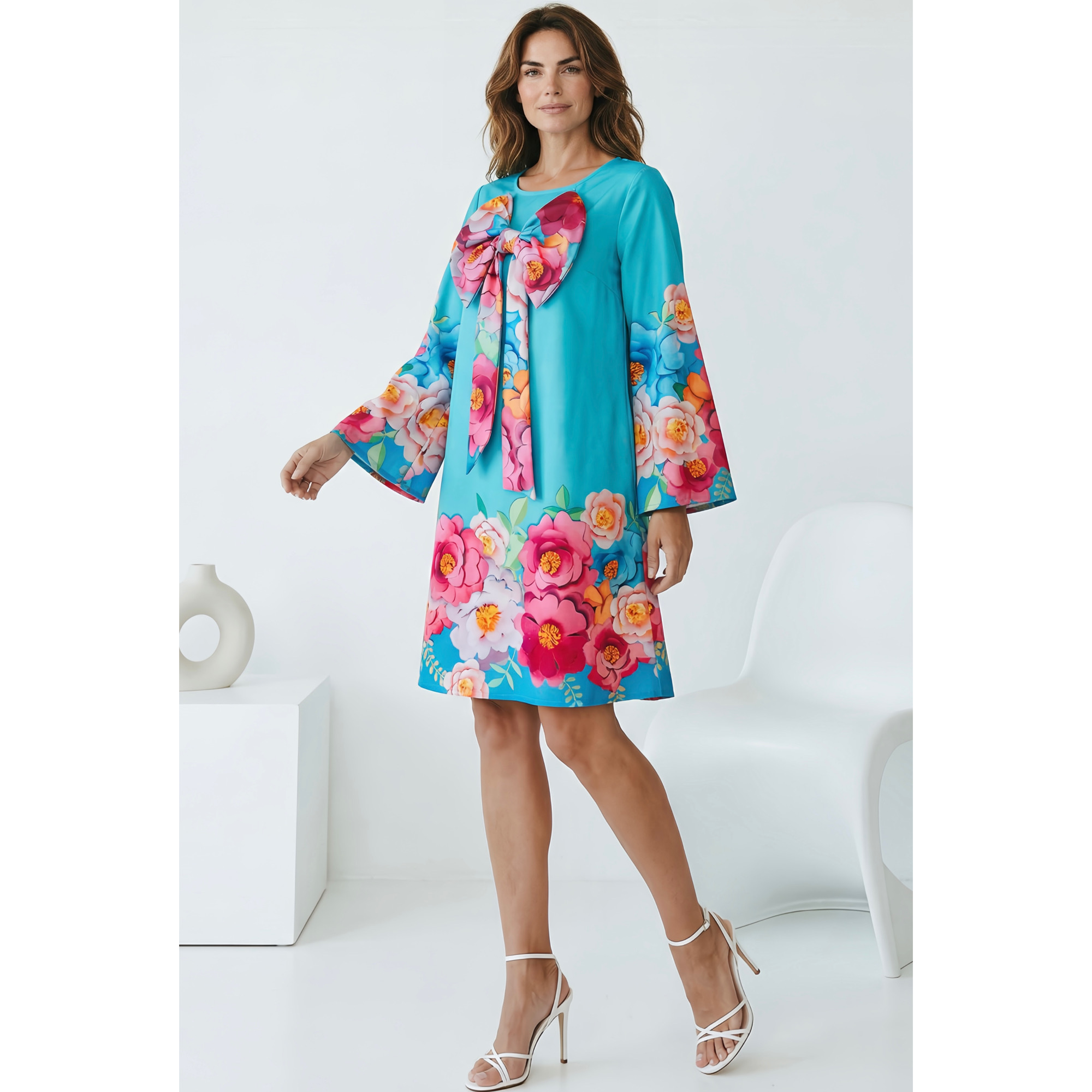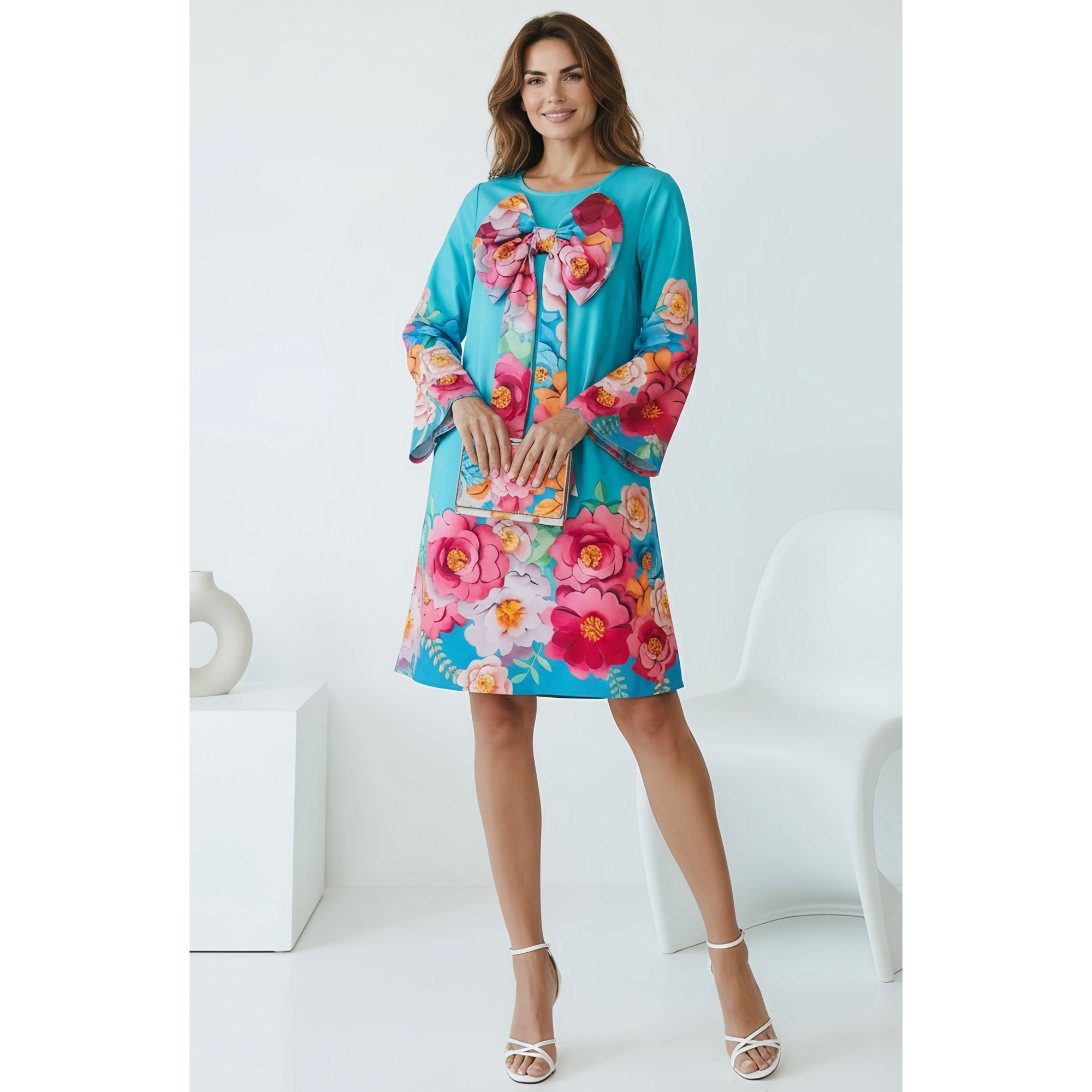 Rochia este midi, materialul este elastic, croiul este lejer. Funda nu este detasabila.