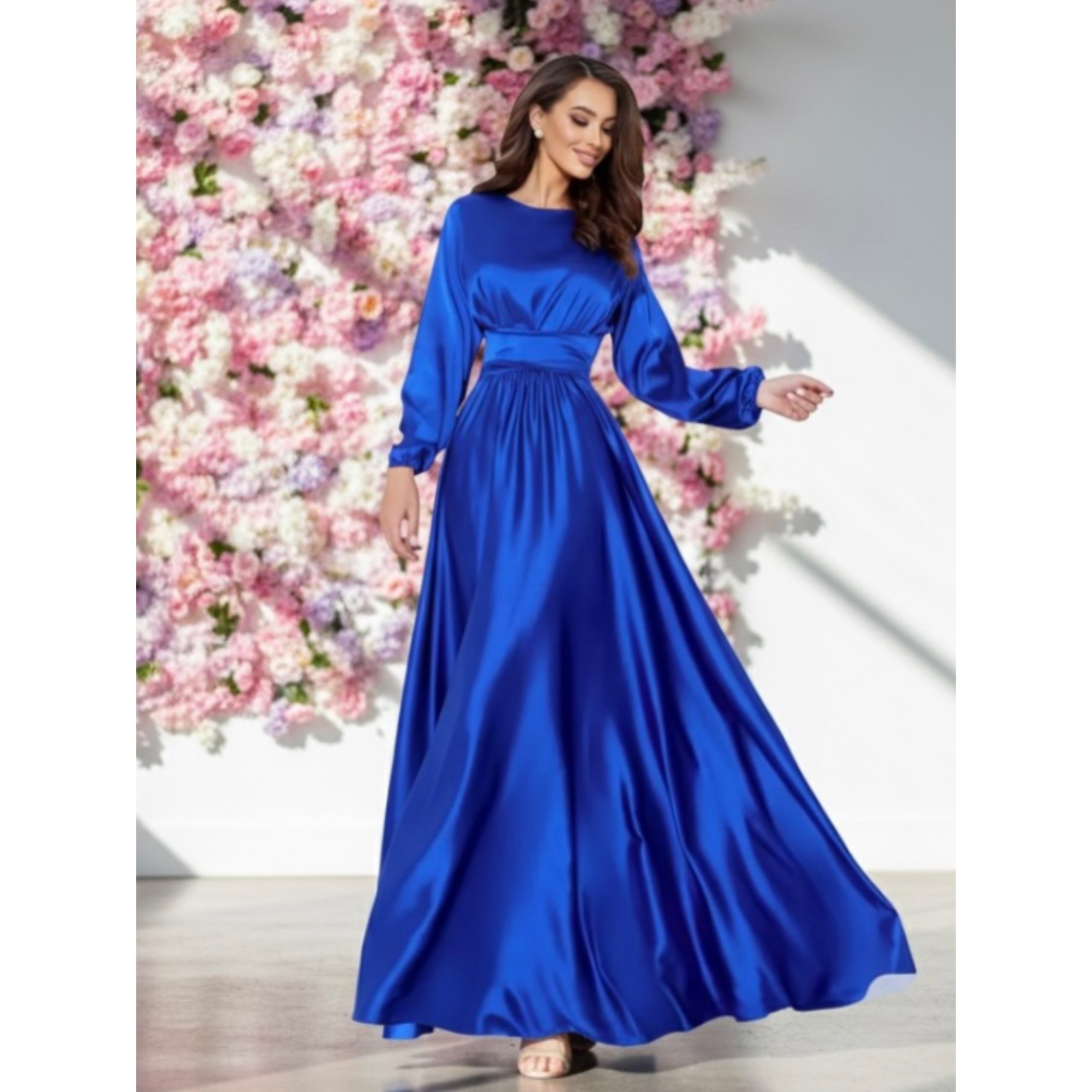 Rochia este confectionata din satin. Lungime standard 145 cm. Se poate face mai lunga sau mai scurta.