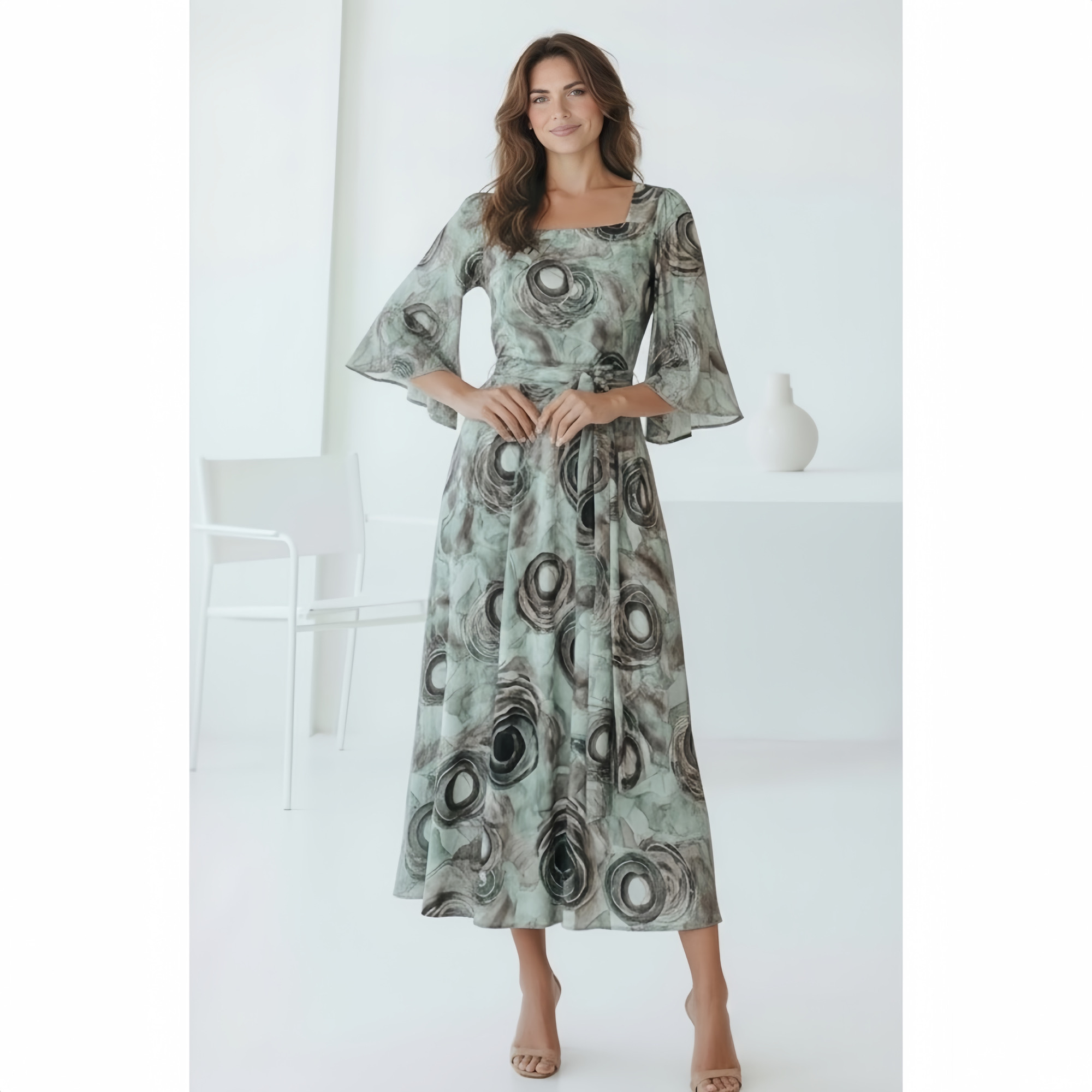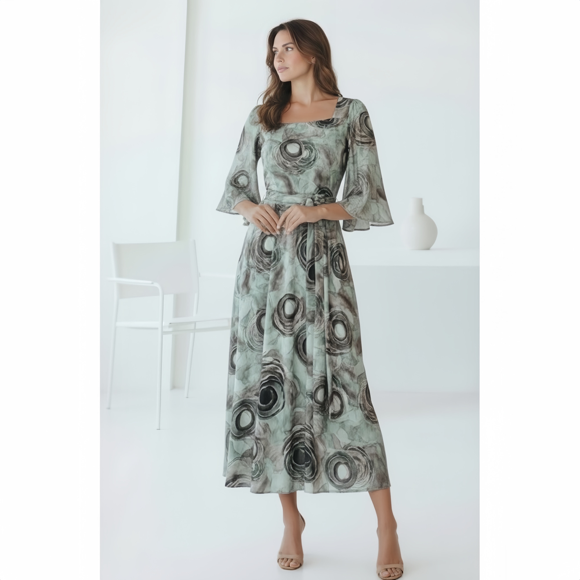 Rochia este confectionata din vascoza, material elastic. Lungime standard 120 cm.