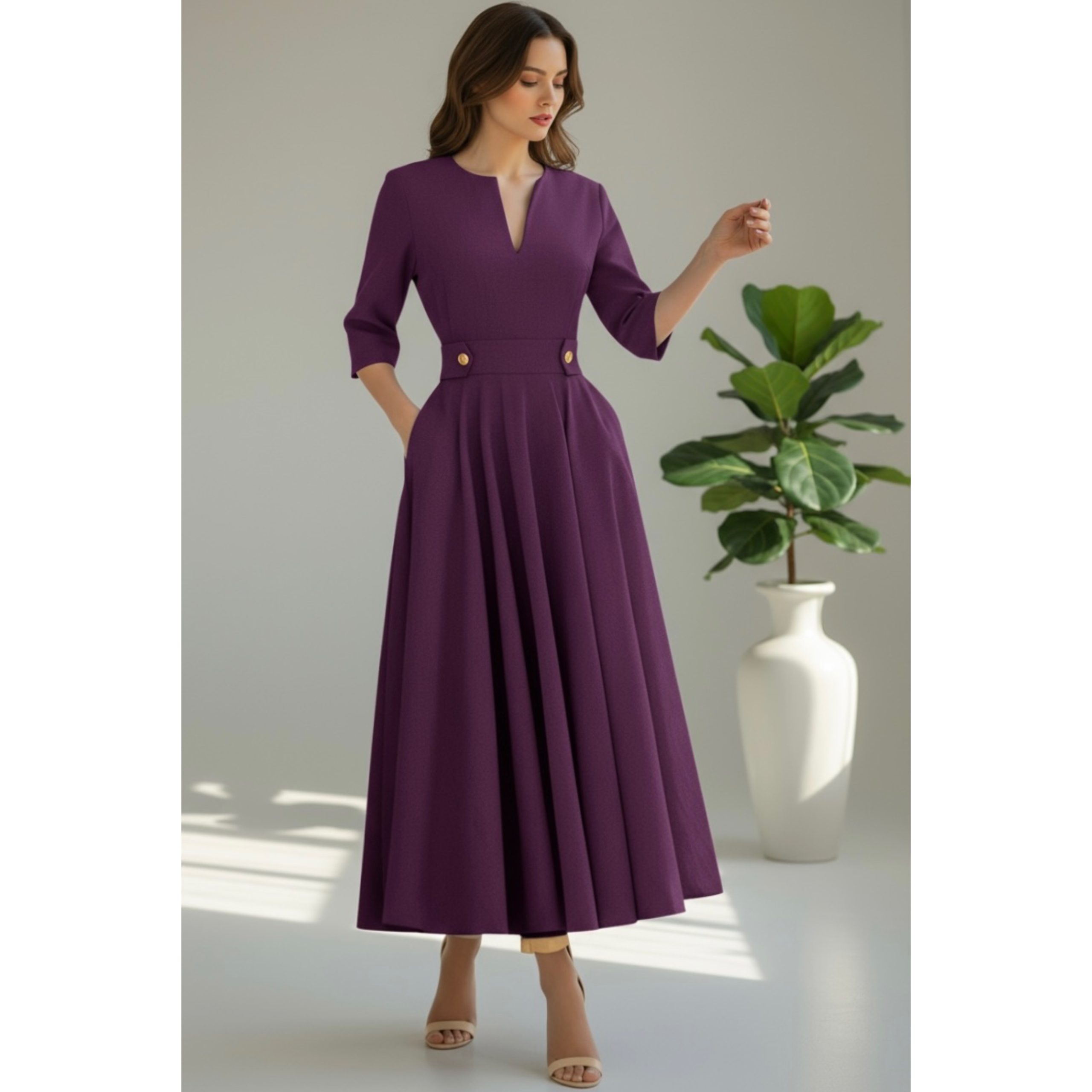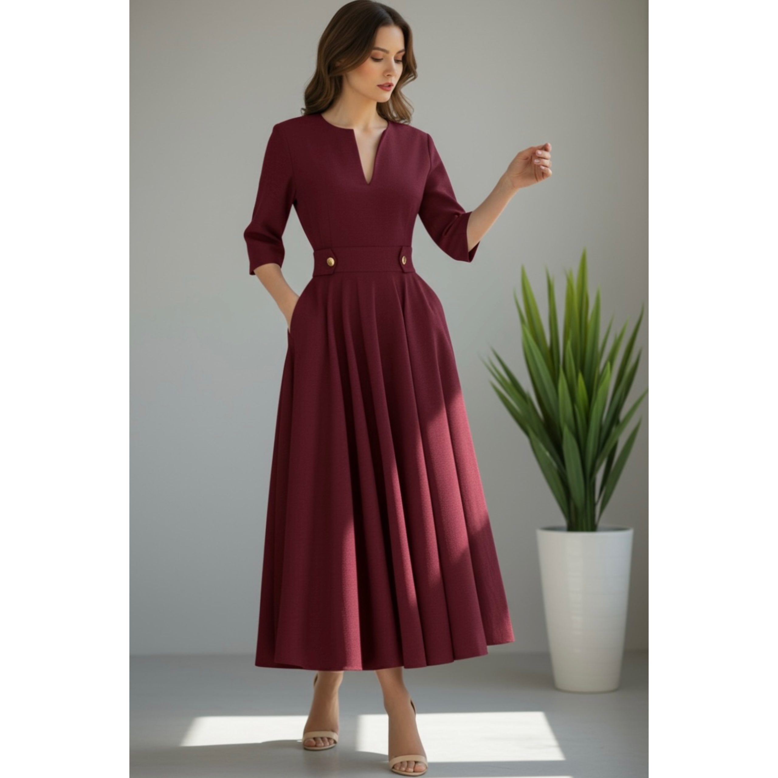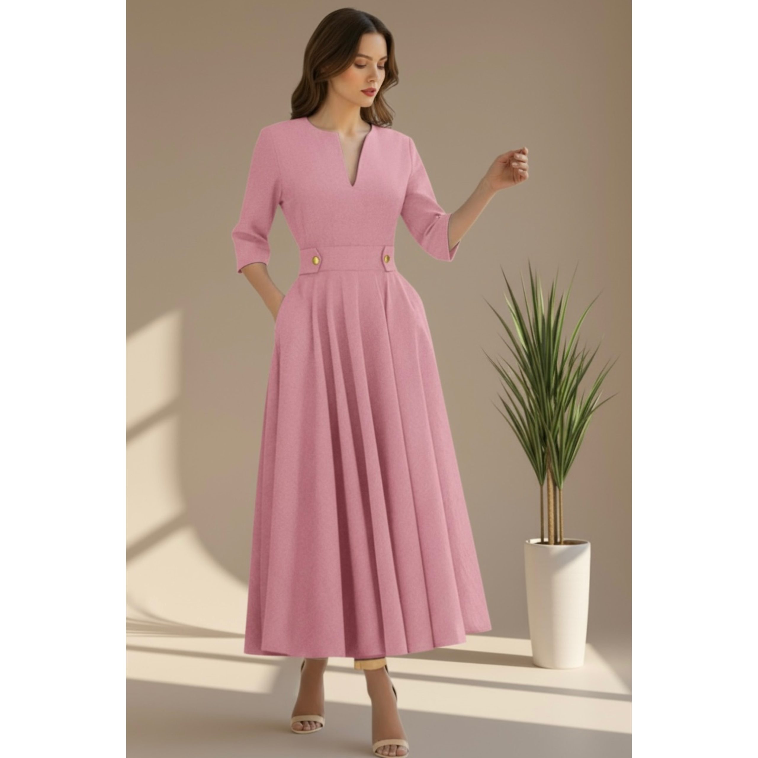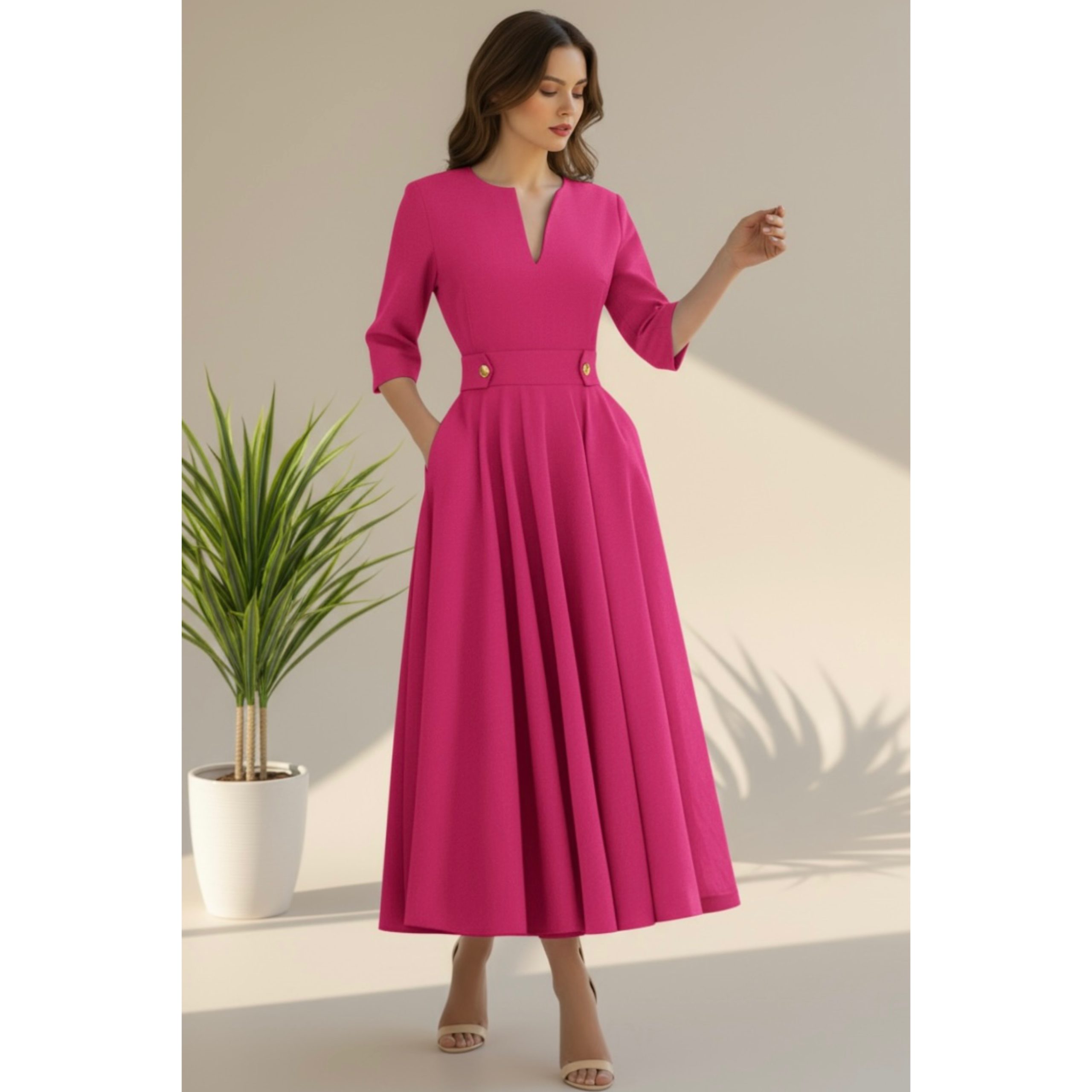 Rochia este confectionata din stofa barbie, material usor elastic. Lungime standard 125 cm.