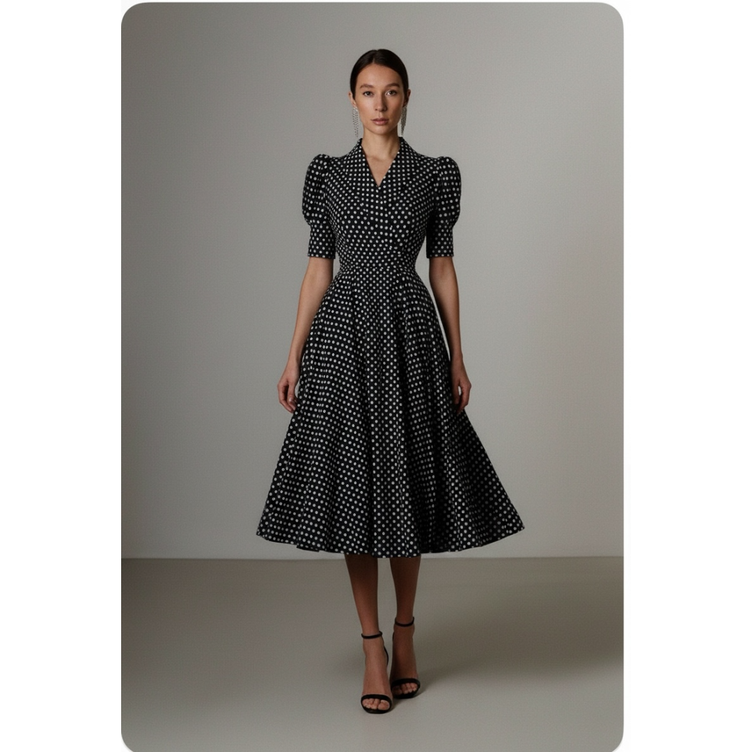 E confectionata din vascoza, materialul nu este elastic, dar rochia are lejeritate.