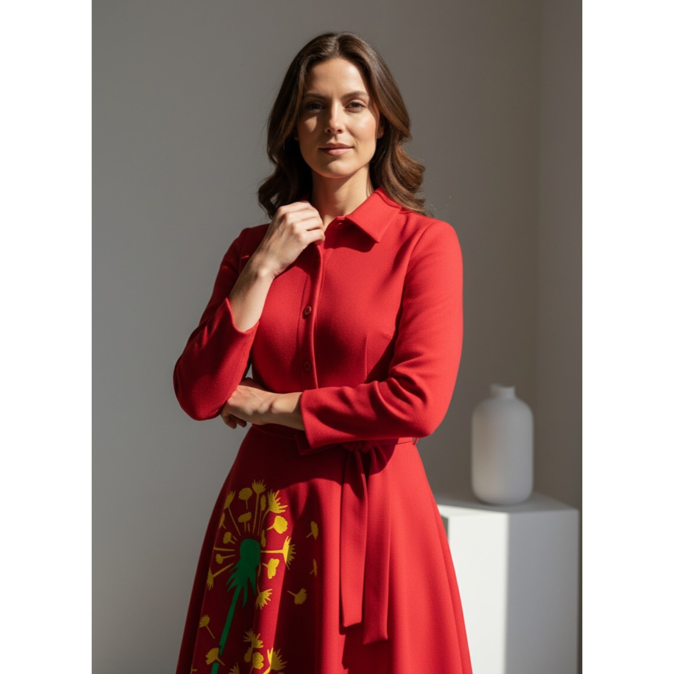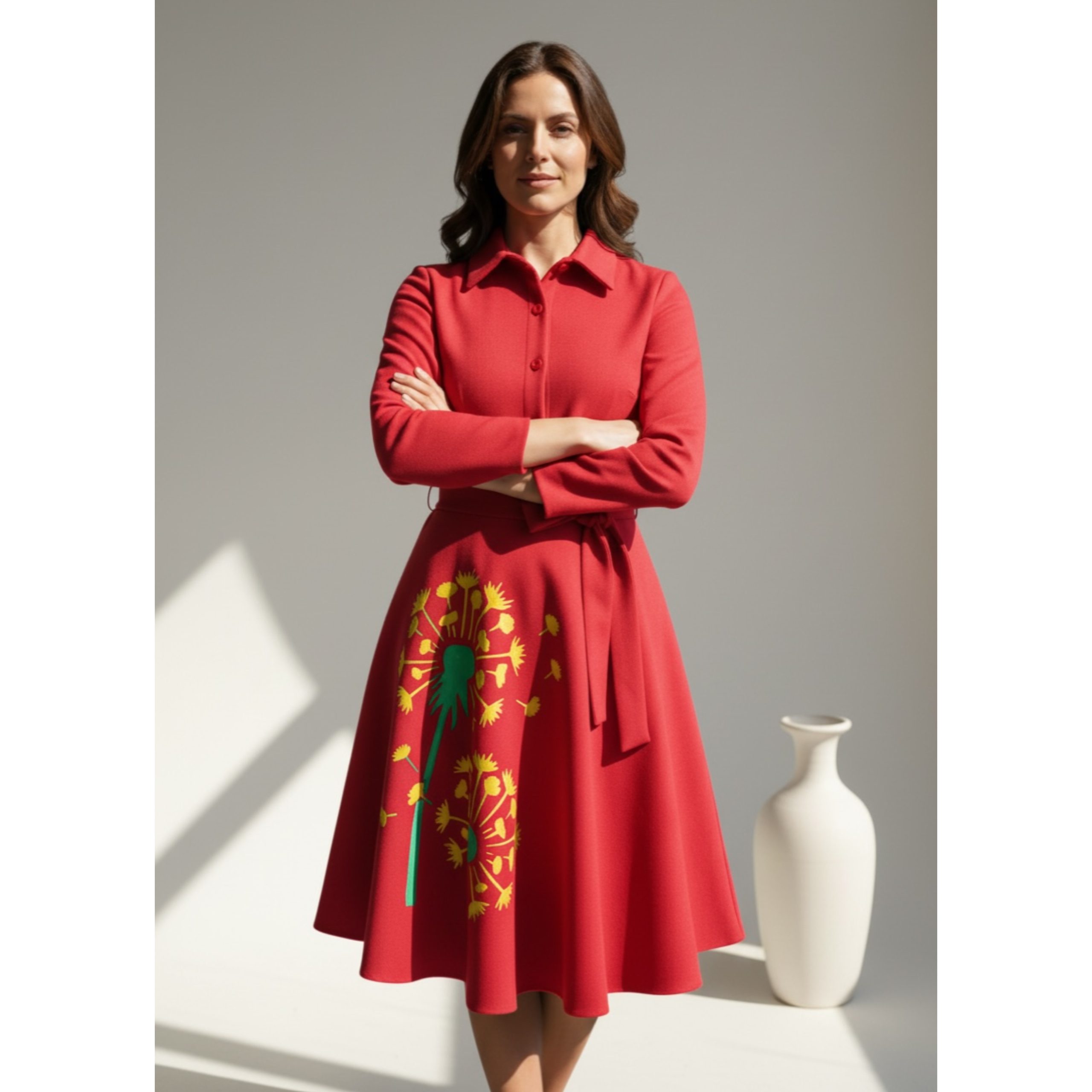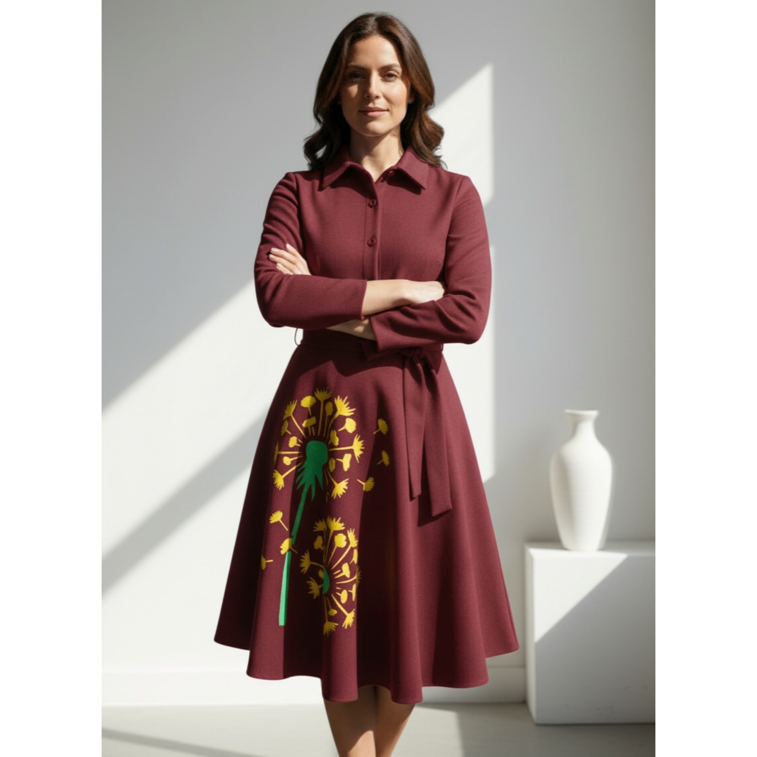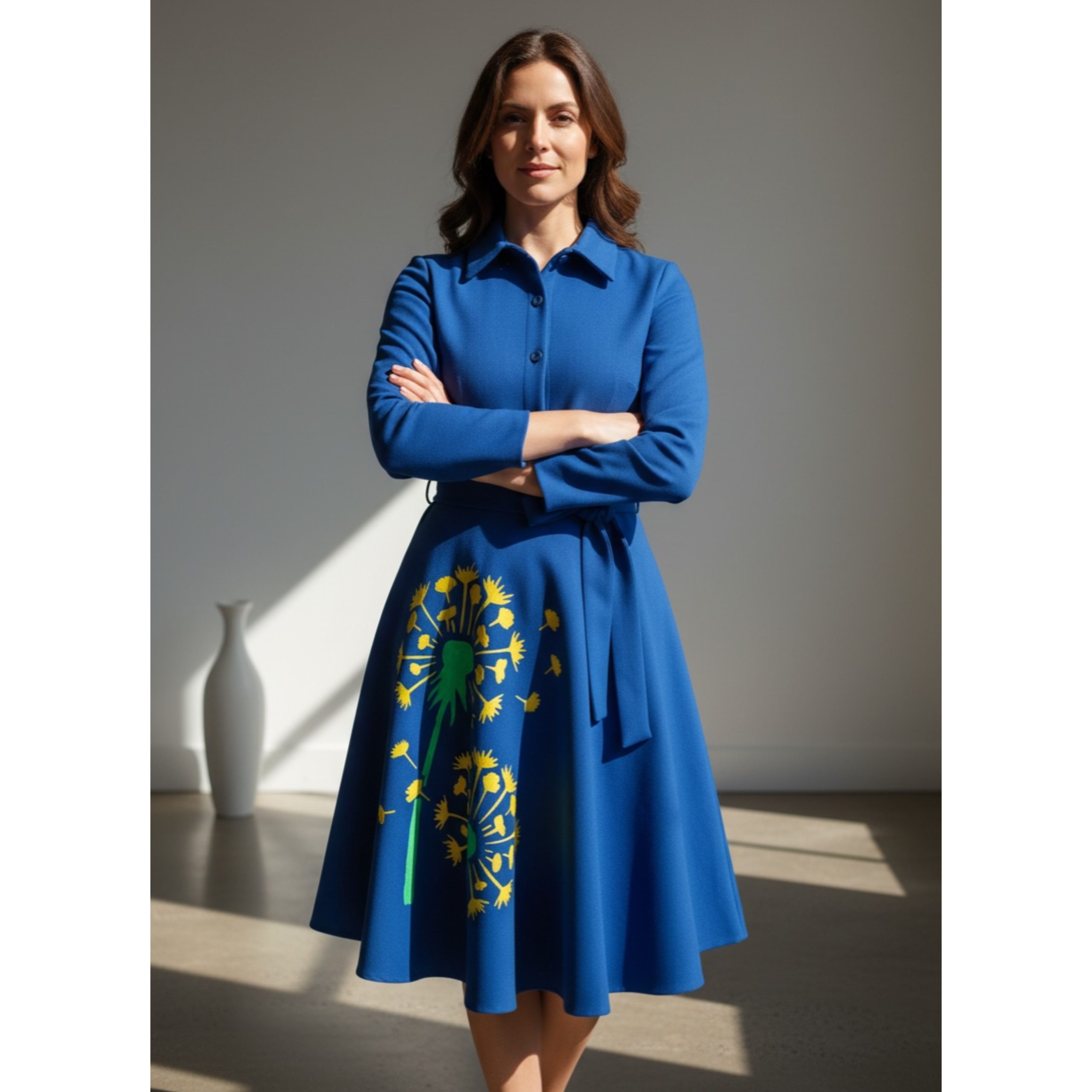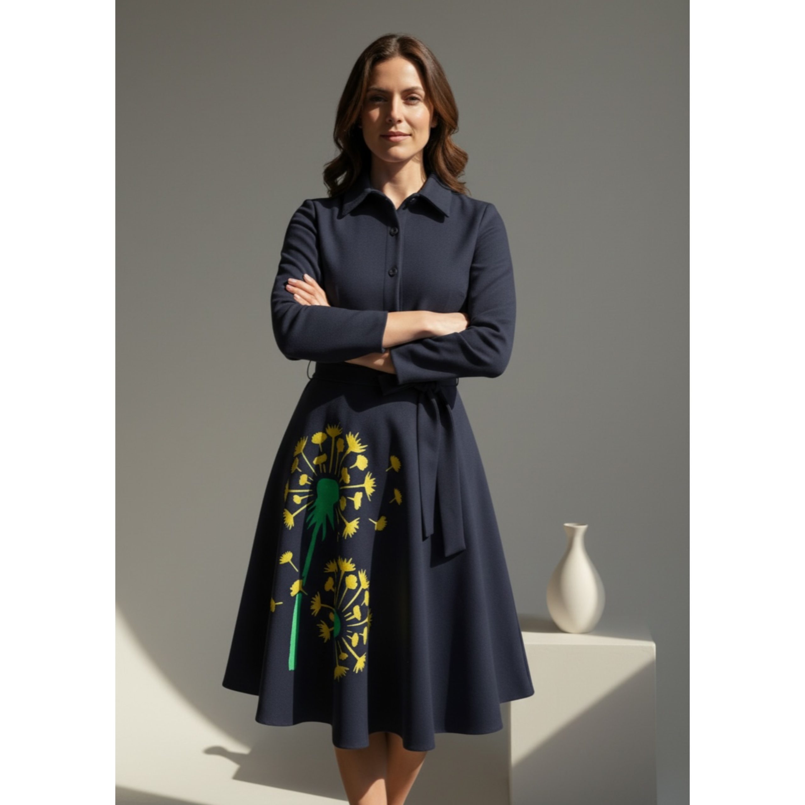 Rochia tip camasa Golden Dandelions este confectionata din stofa barbi. Materialul este usor elastic, este netransparent si este potrivit pentru orice sezon. Modelul este prevazut cu fermoar lateral si cordon detasabil in talie.?