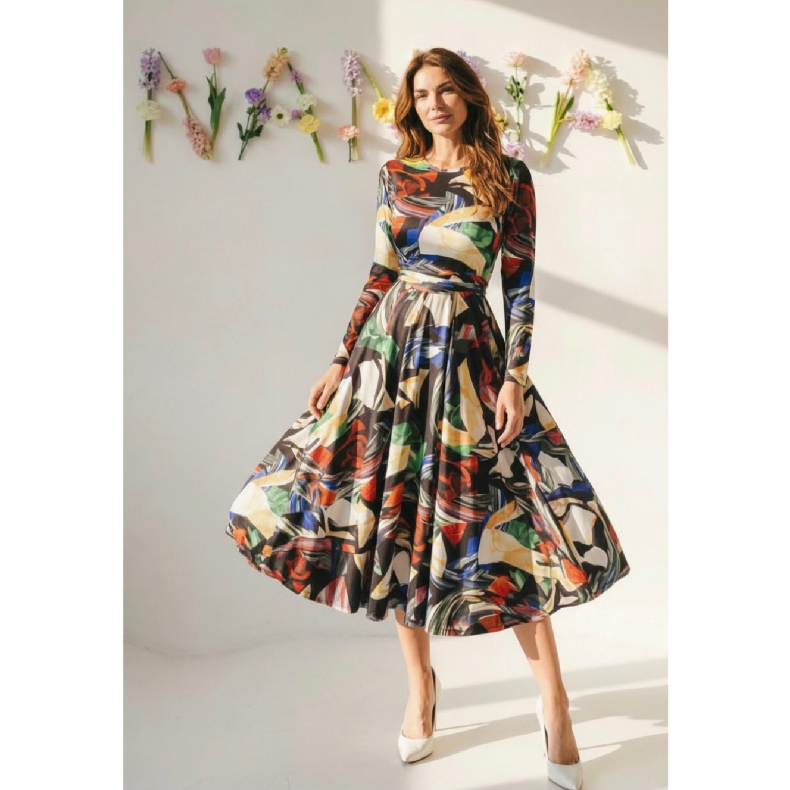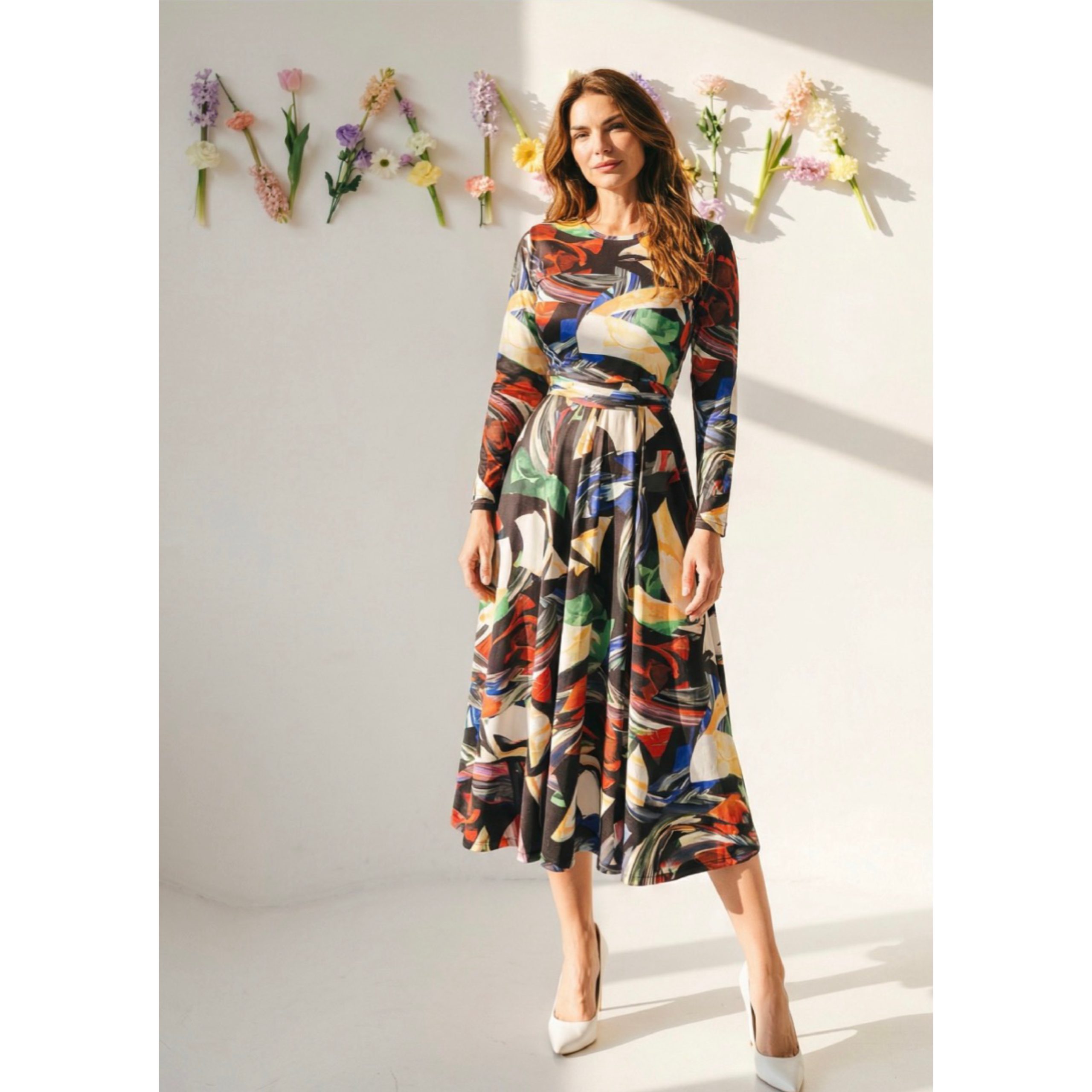 Rochia este confectionata din bumbac, material elastic. Are cordon detasabil