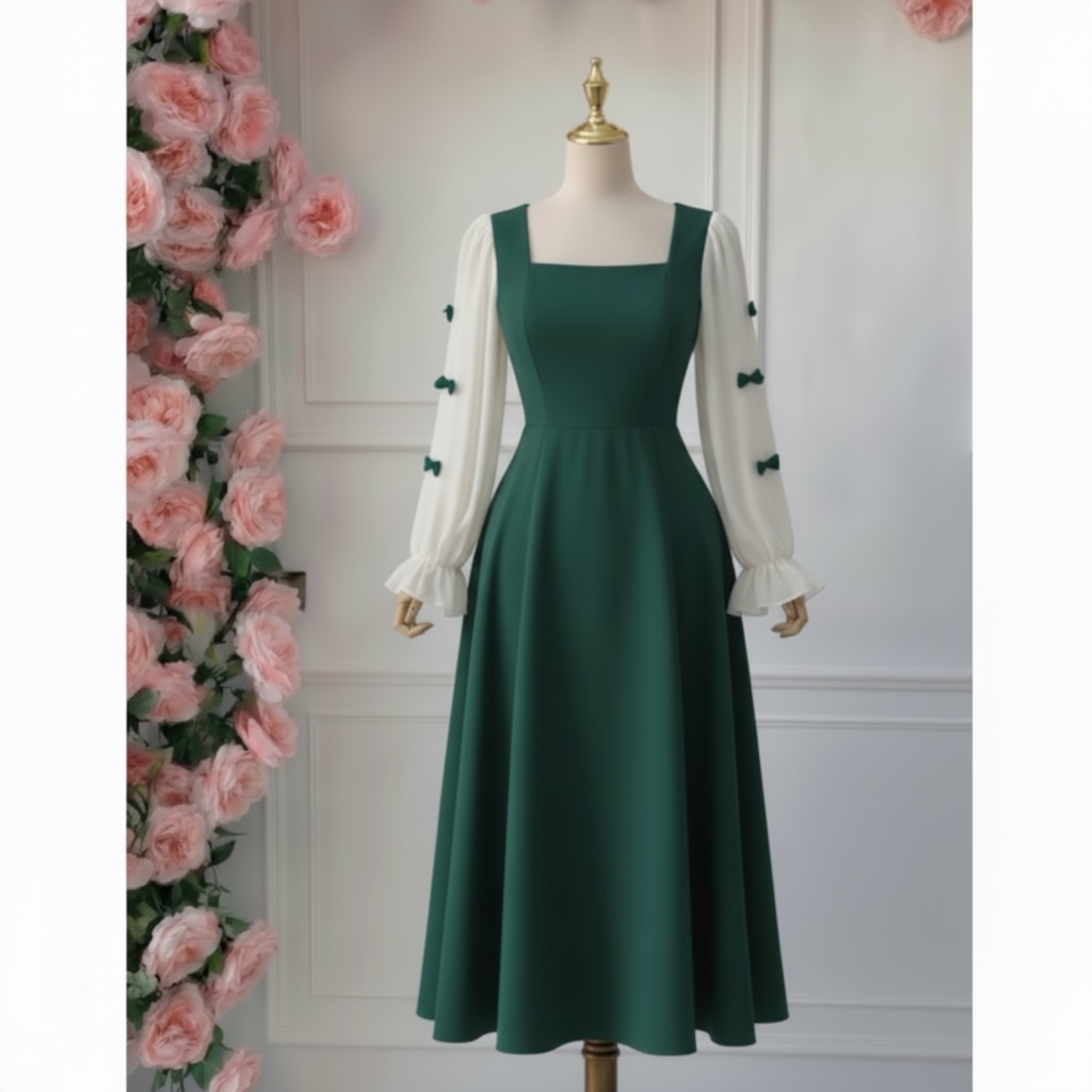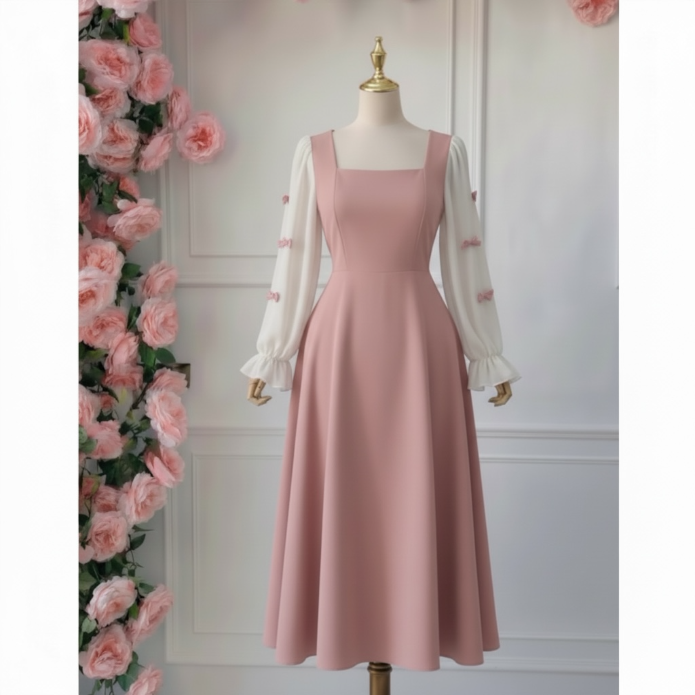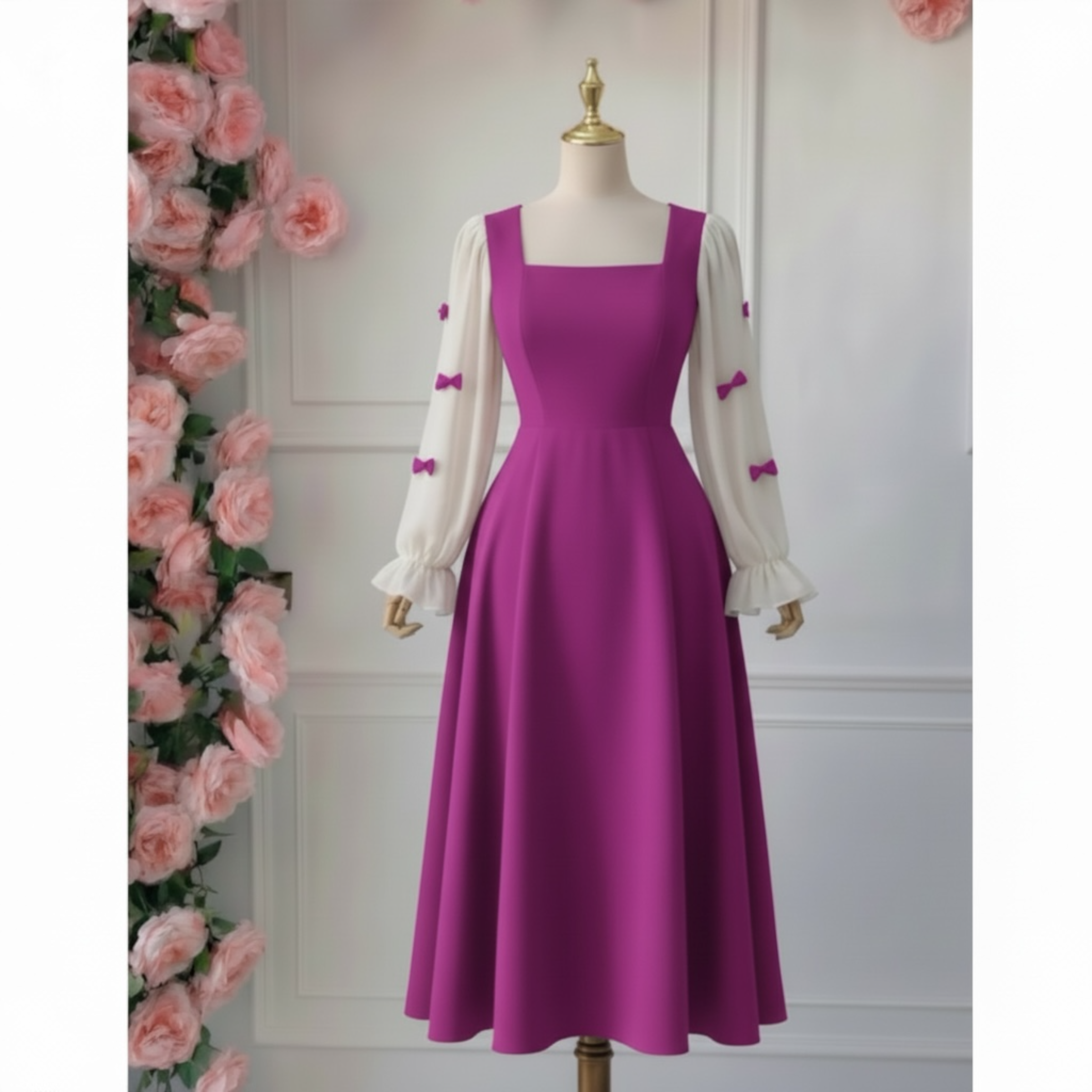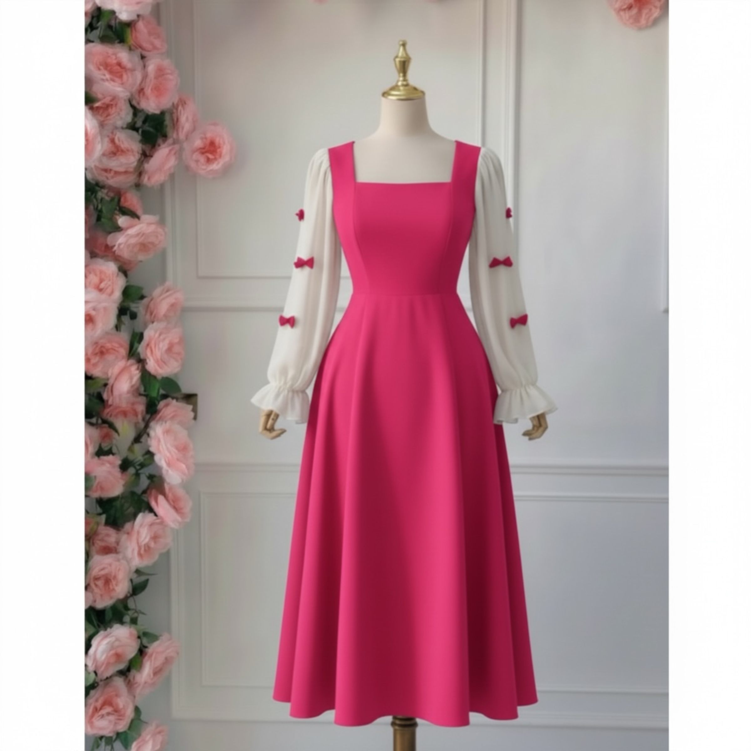 Este confectionata din stofa barbie si vascoza(manecile). Funditele nu sunt detasabile.