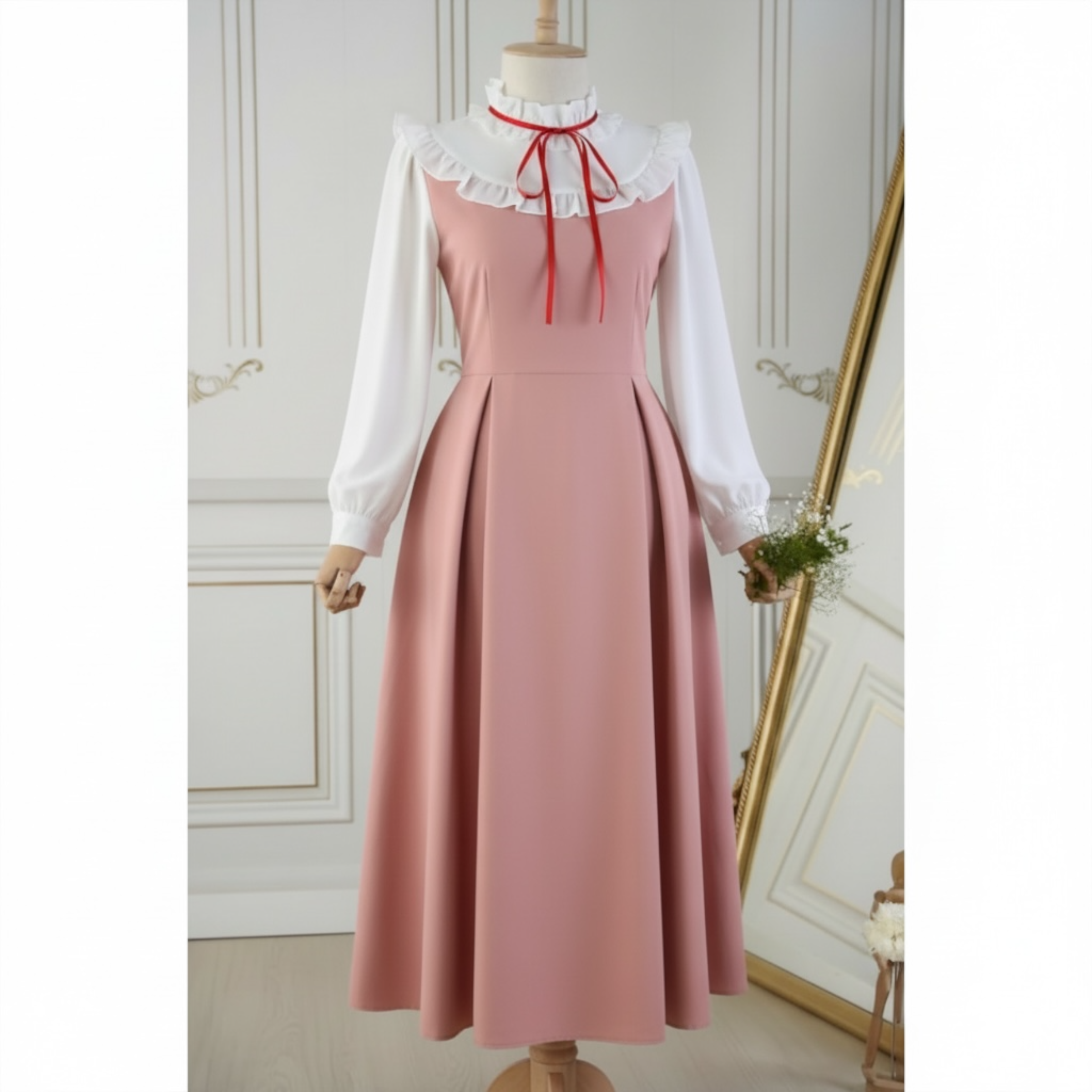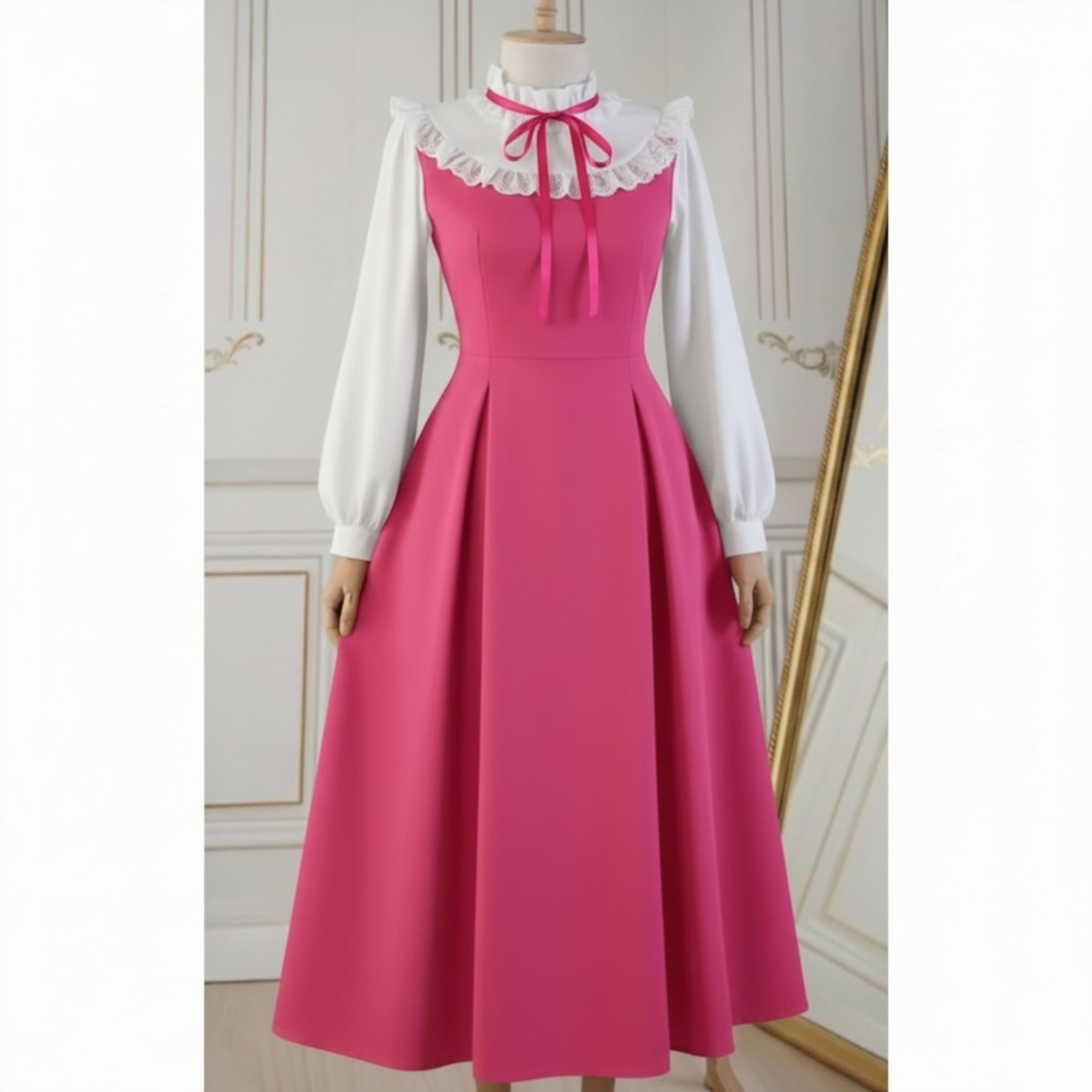 Rochia este confectionata din stofa barbie, usor elastica, netransparenta. . Lungime standard 115 cm.