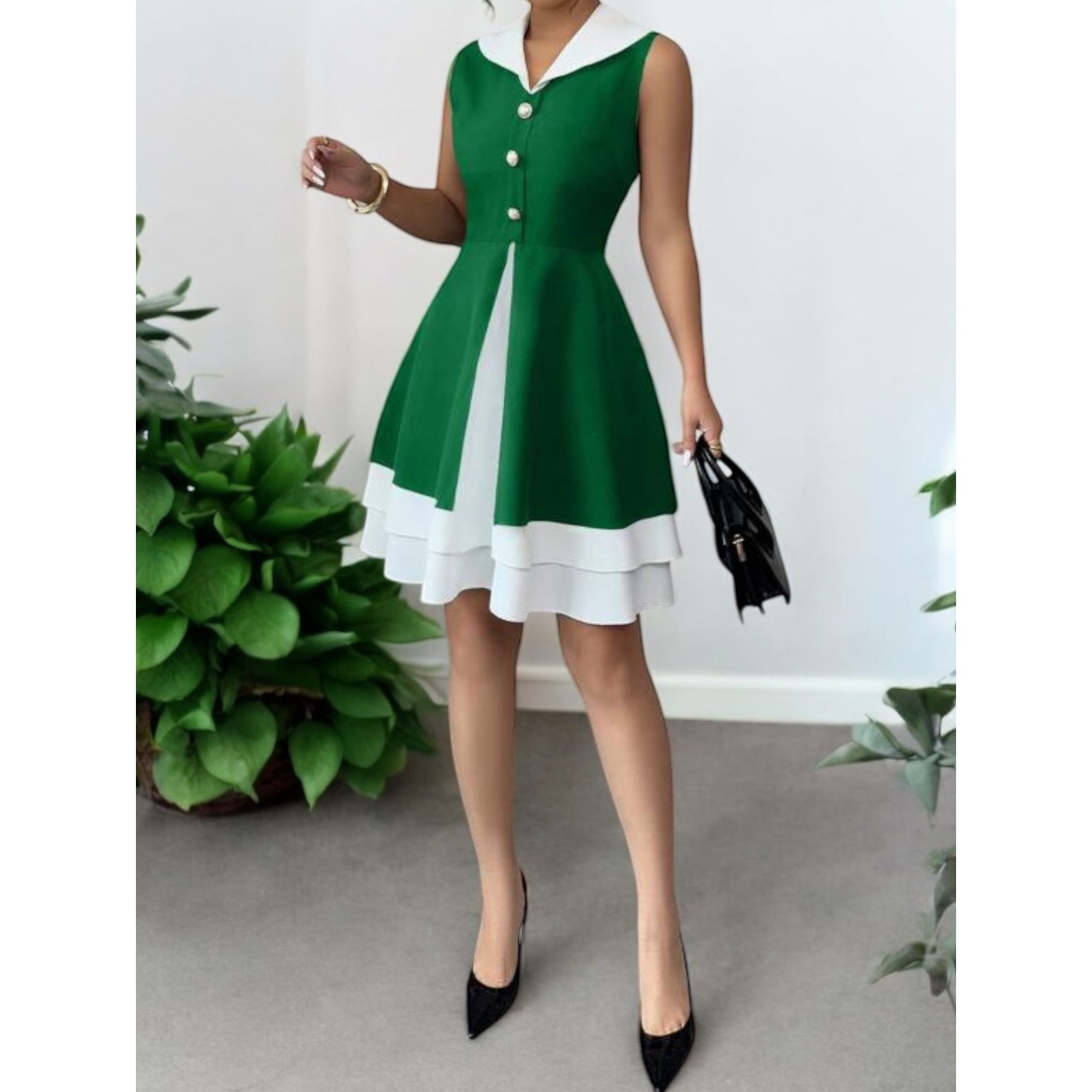 Rochia este confectionata din stofa barbie, material plin, usor elastic.