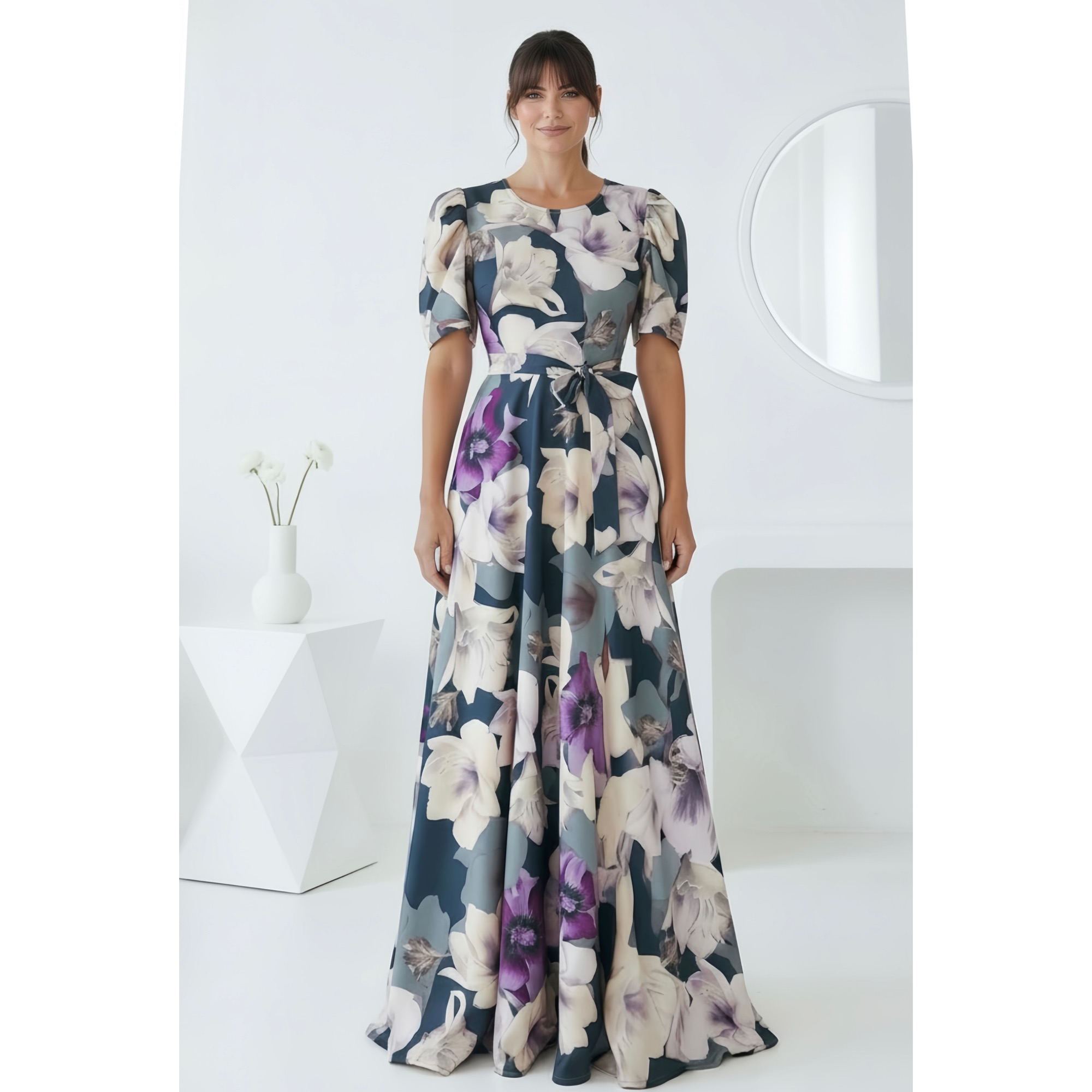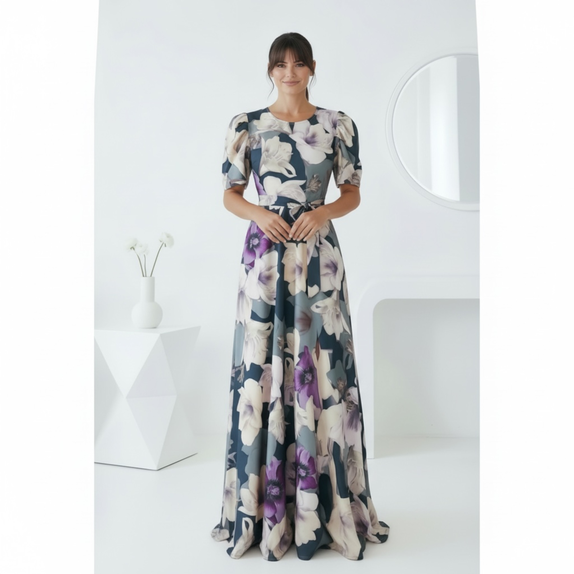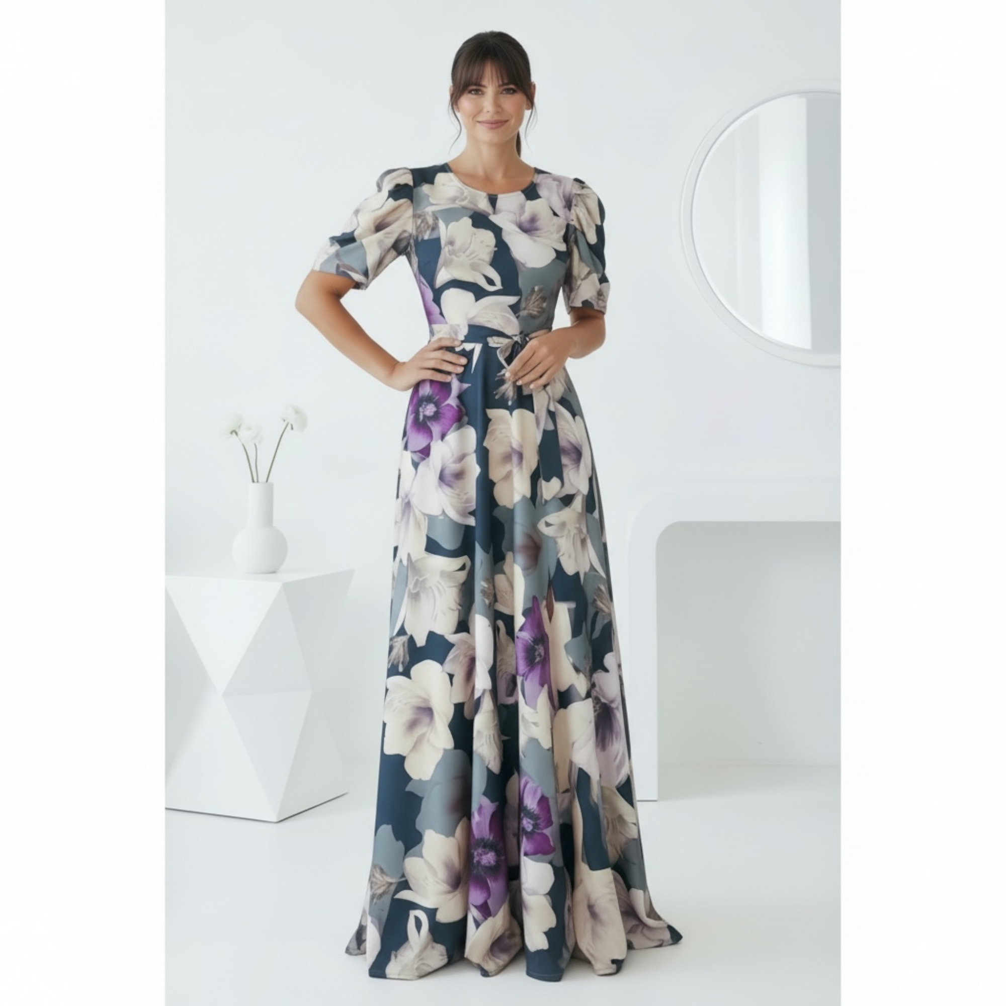 Rochia este confectionata din material plin, elastic. Are cordon detasabil.