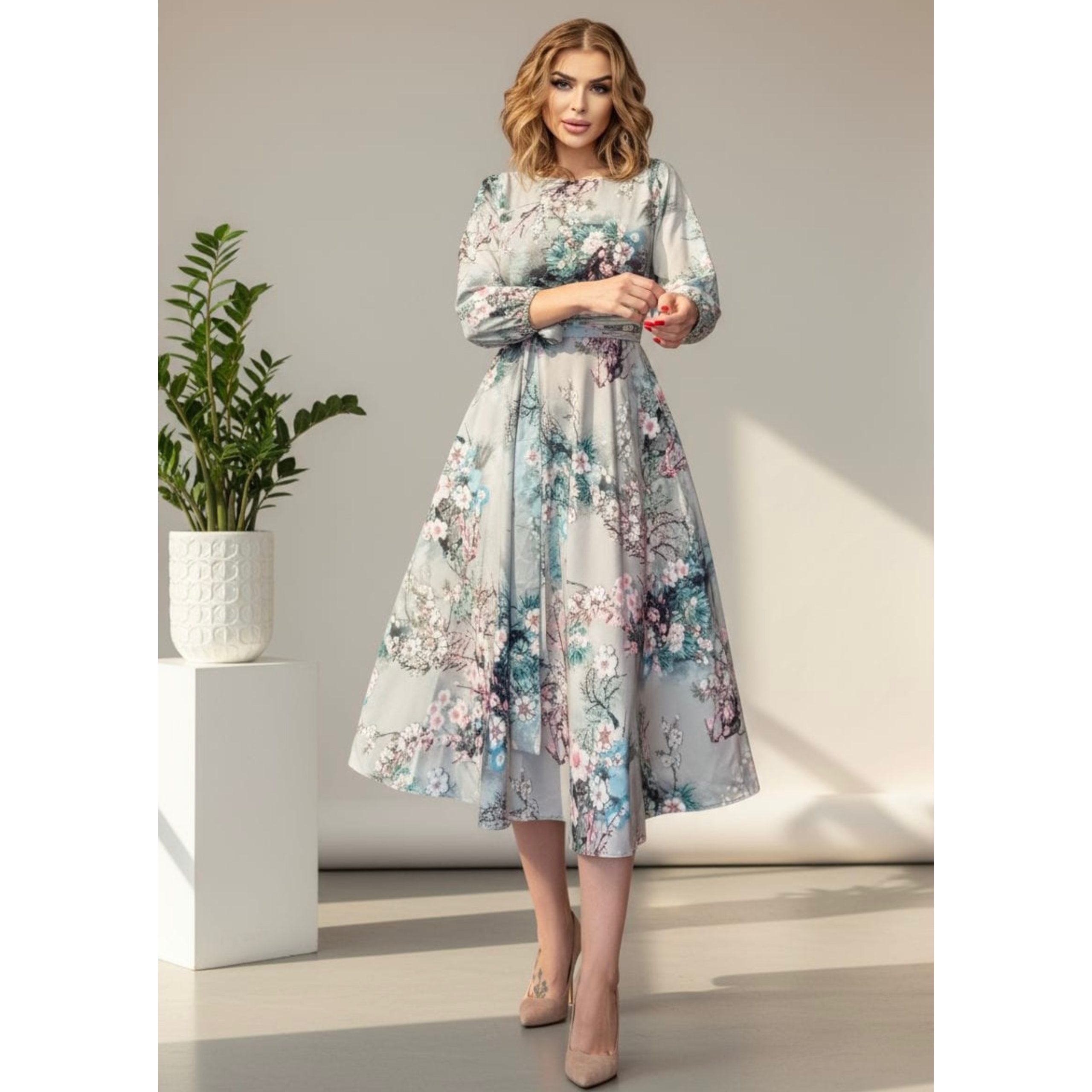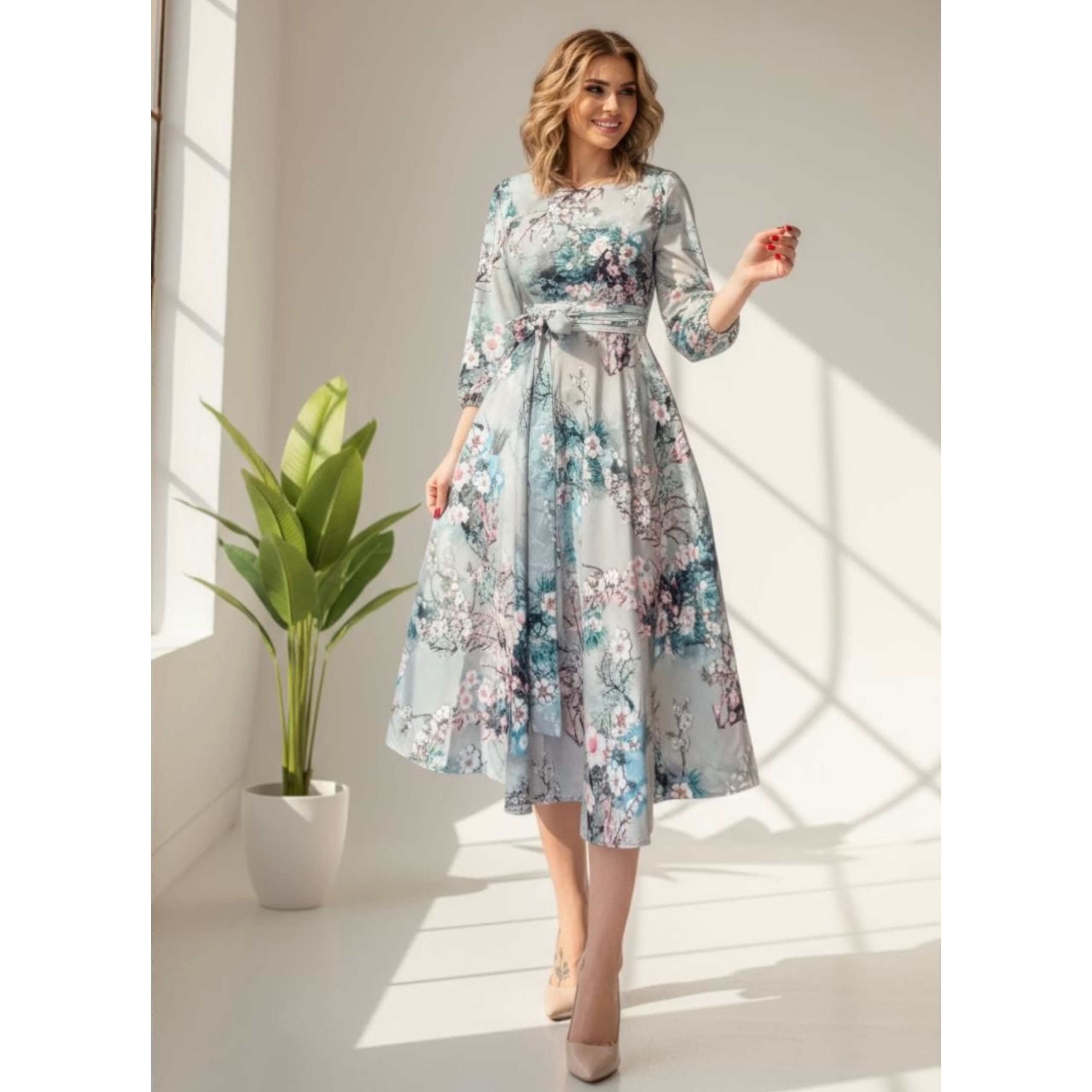 Rochie are lungime standard 115cm( rochia se poate face mai lunga sau mai scurta, cu maneci trei sferturi sau lungi, daca doritu personalizare, mentionati acest aspect in sectiunea Observatii, la finalizarea comenzii). Are fermoar lateral si cordon dublu detasabil.