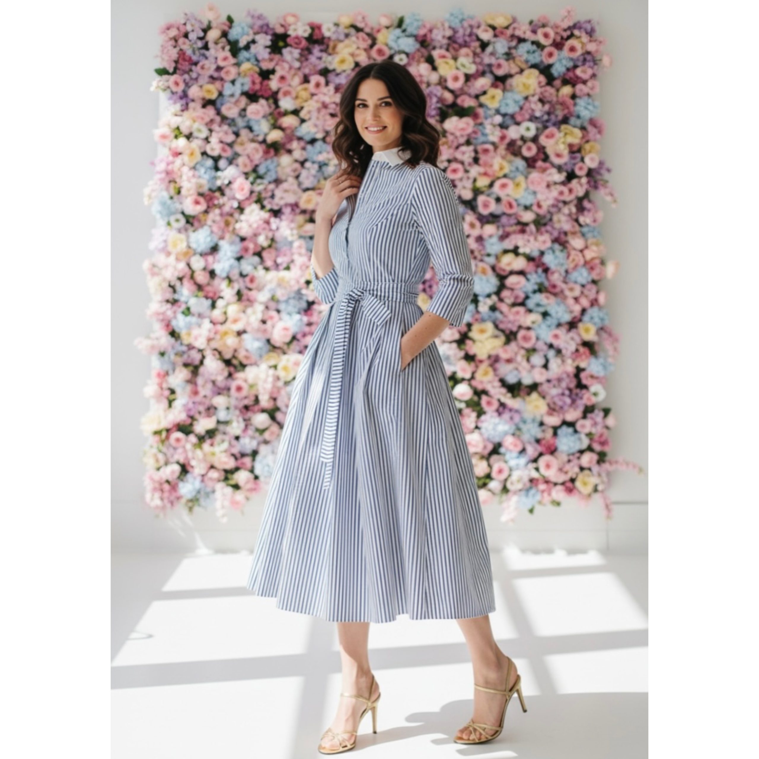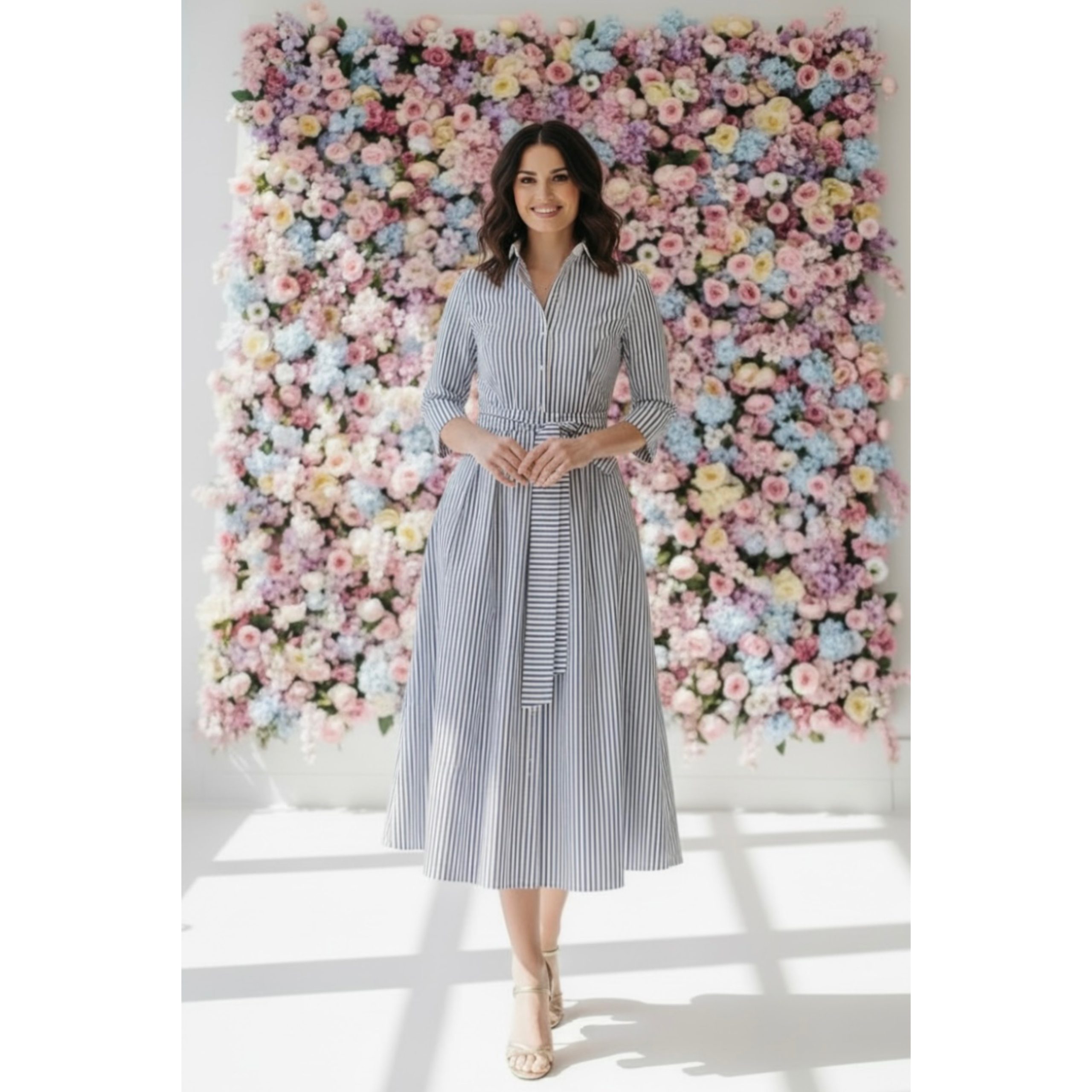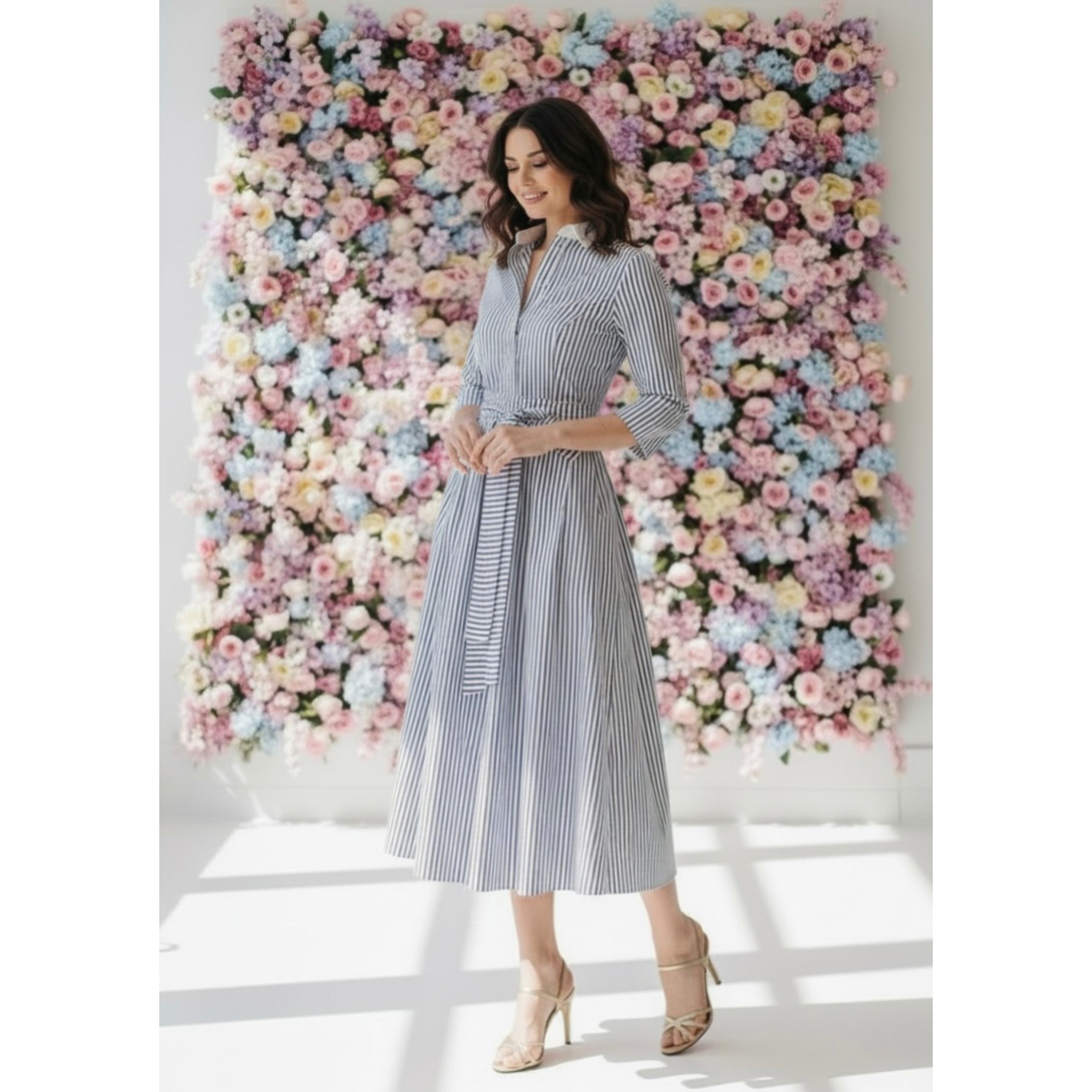 Rochia are lungime standard 115cm( rochia se poate face mai lunga sau mai scurta, daca doriti personalizare, mentionati acest aspect in sectiunea Informatii Suplimentare, la finalizarea comenzii). Are nasturi functionali si cordon detasabil. Este confectionata din bumbac plin, netransparent, calitate premium. Dungile sunt bleumarin.