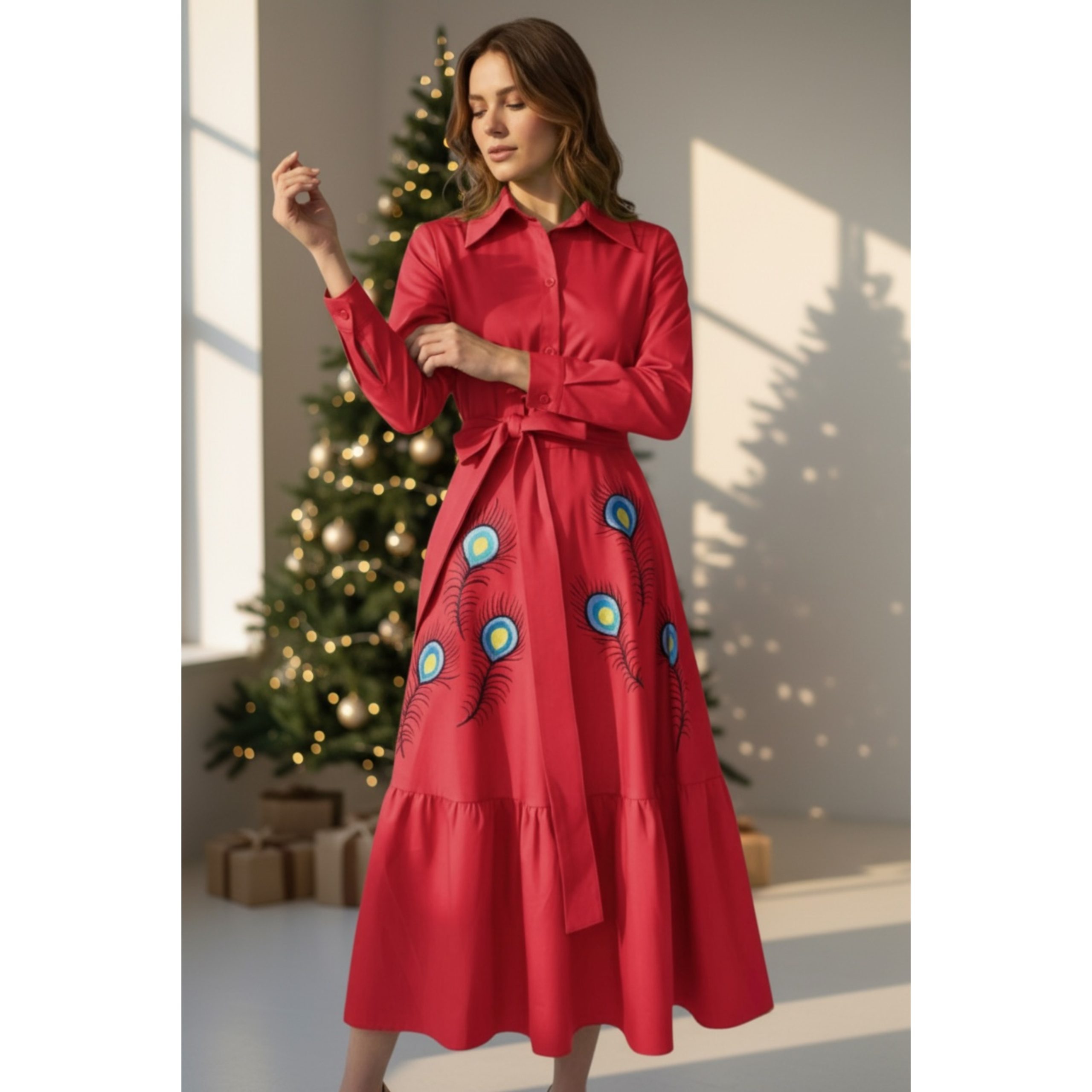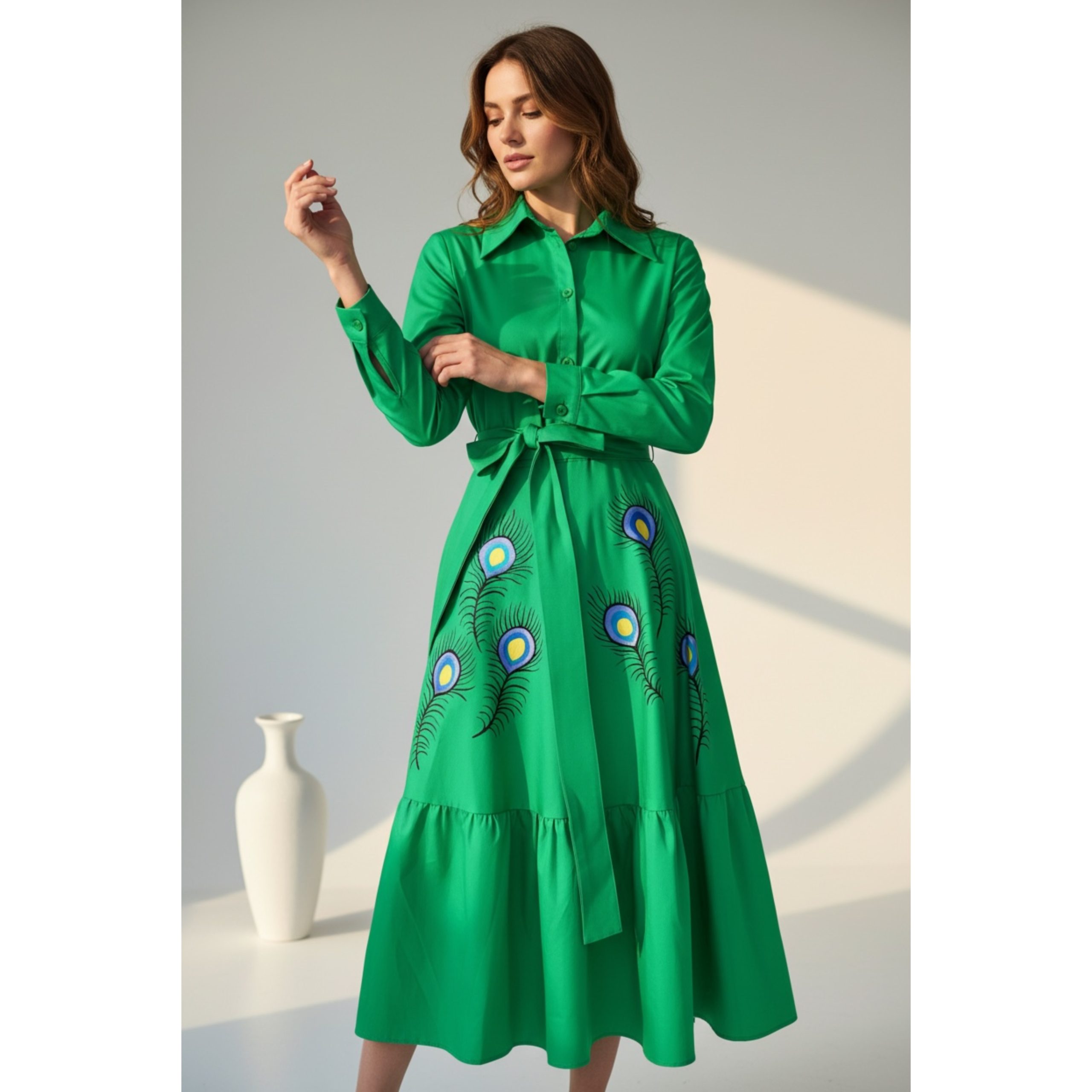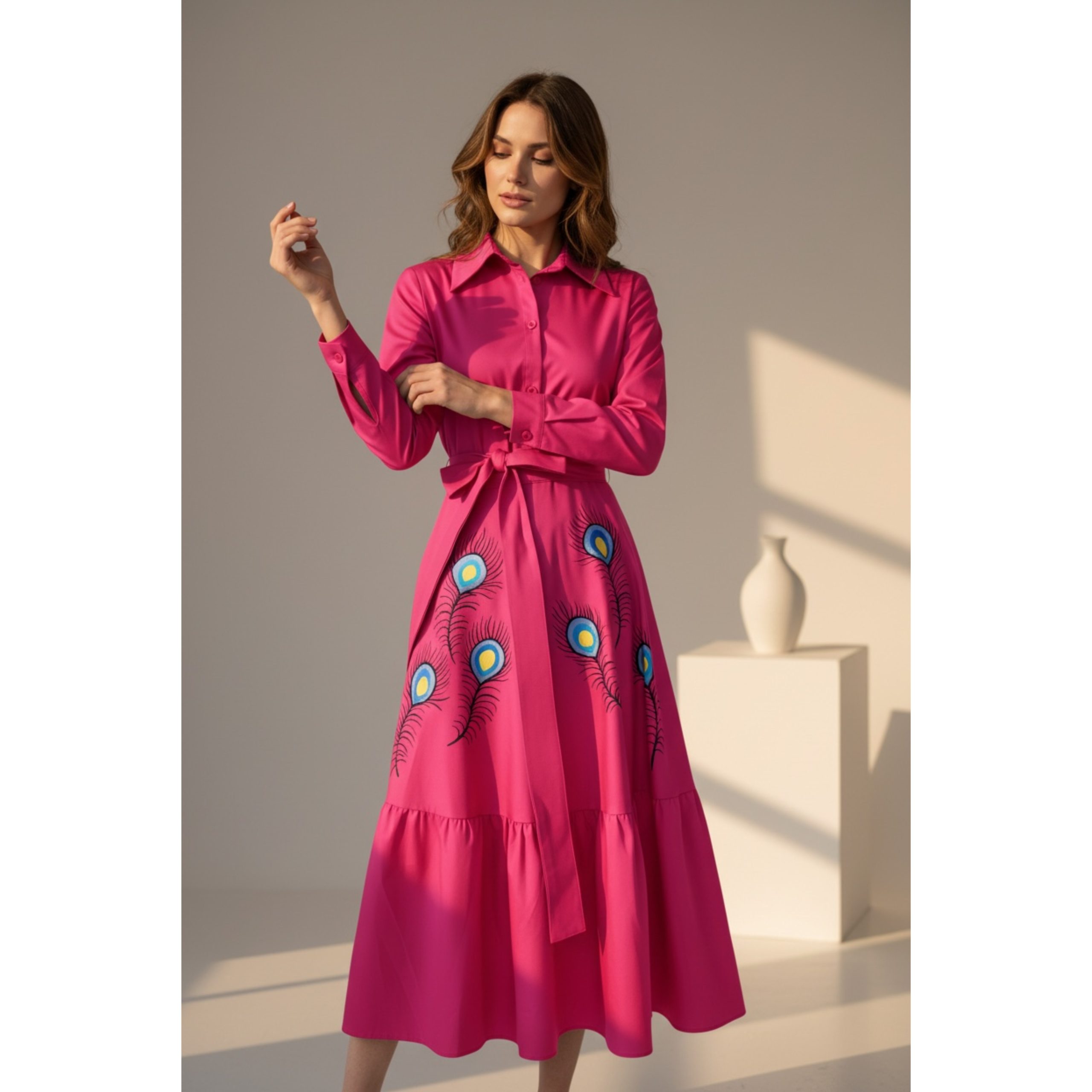Rochia are fermoar lateral si cordon detasabil. Este pictata manual.