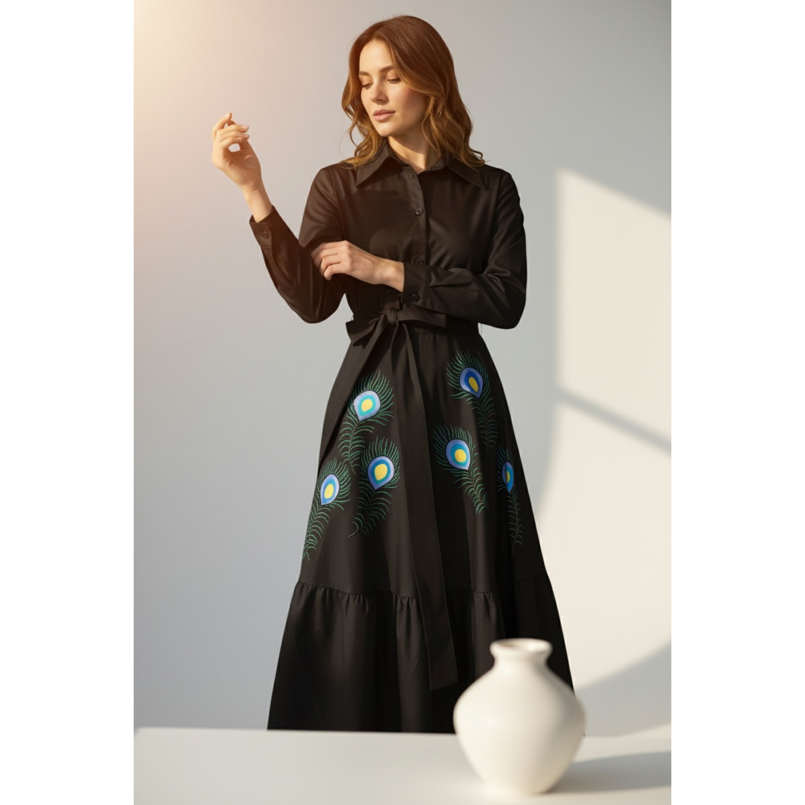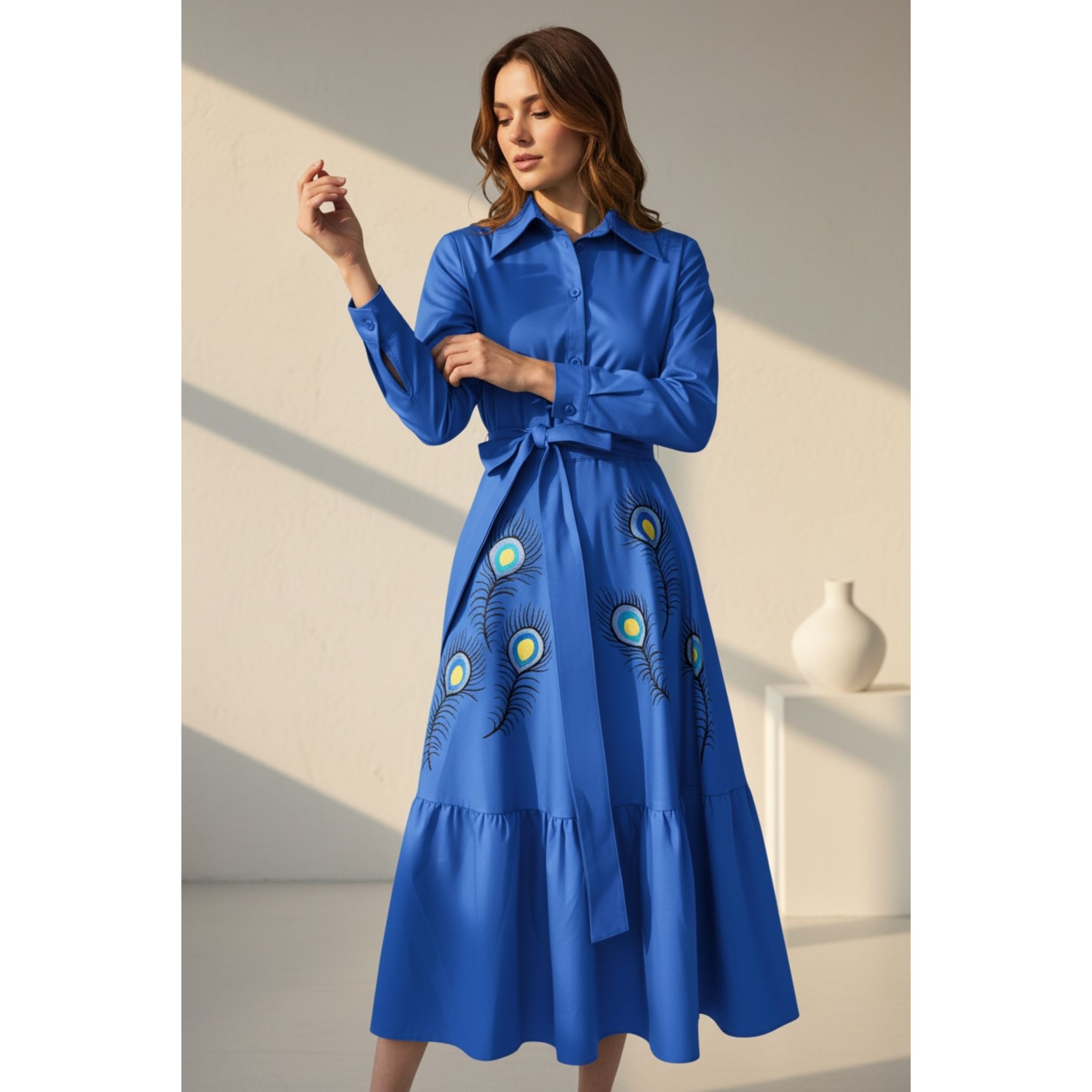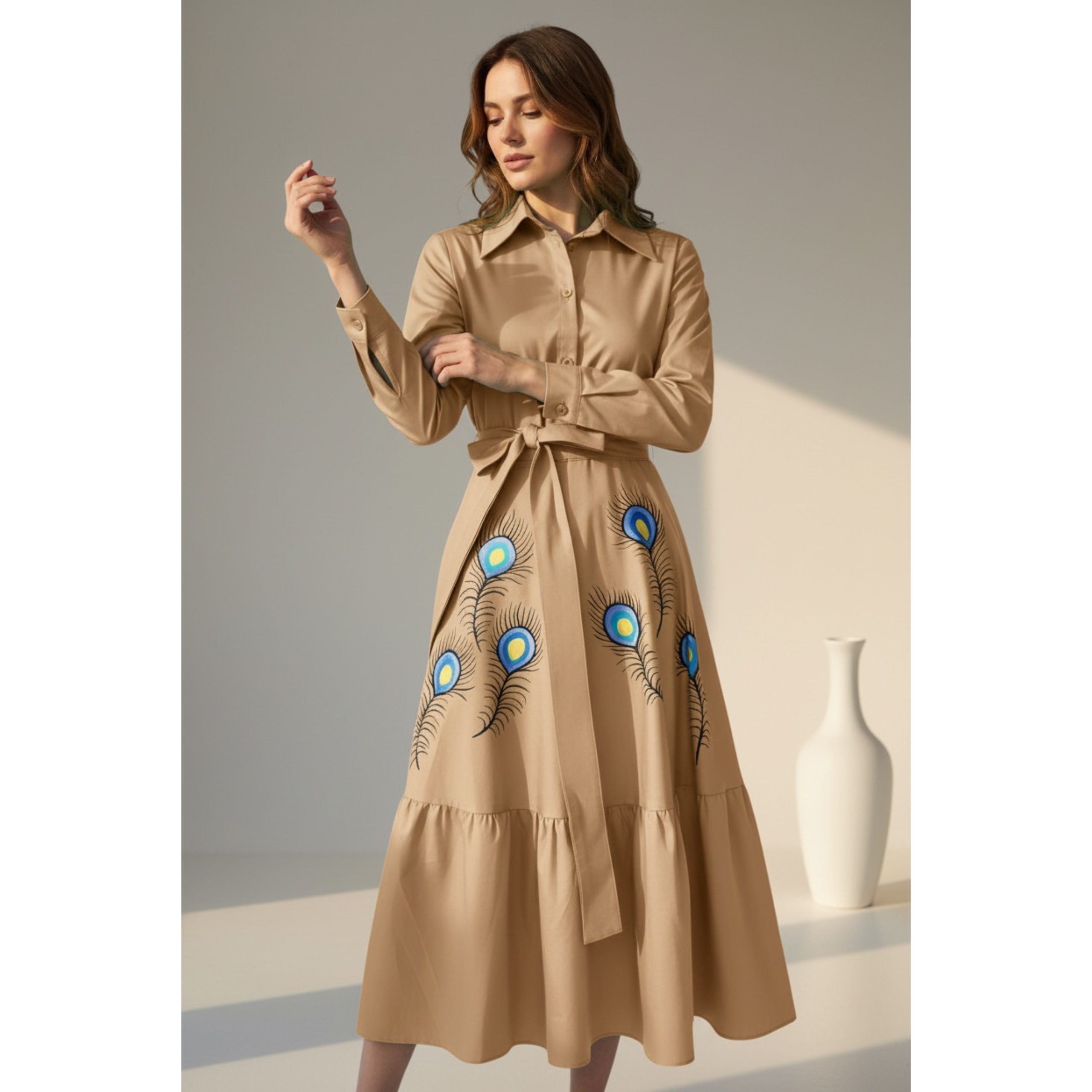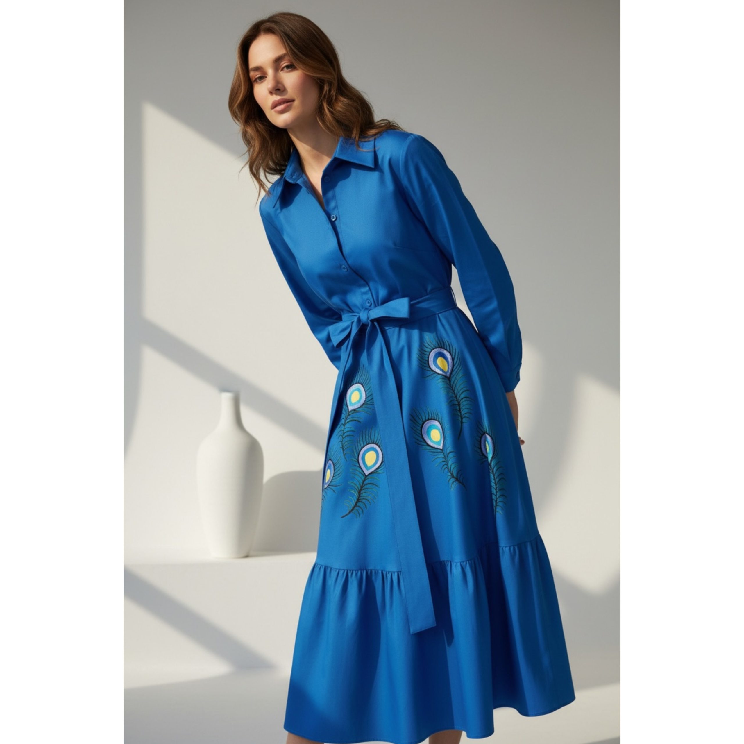 Rochia are fermoar lateral si cordon detasabil. Este pictata manual.