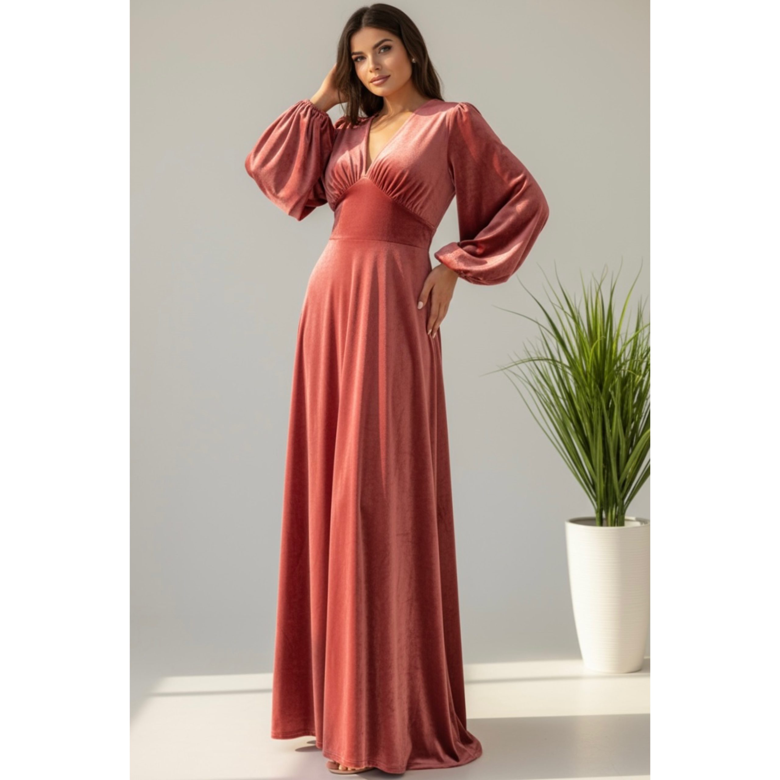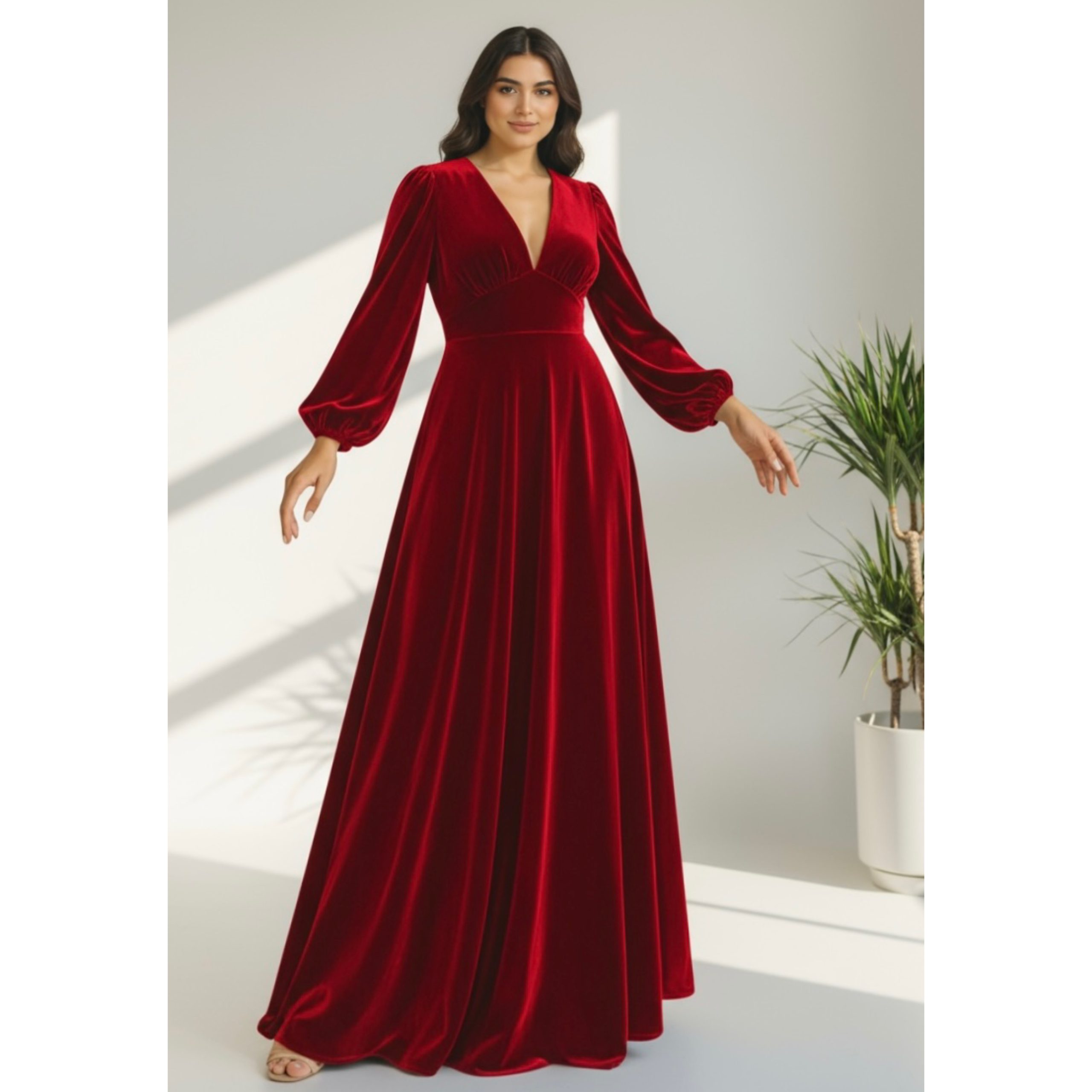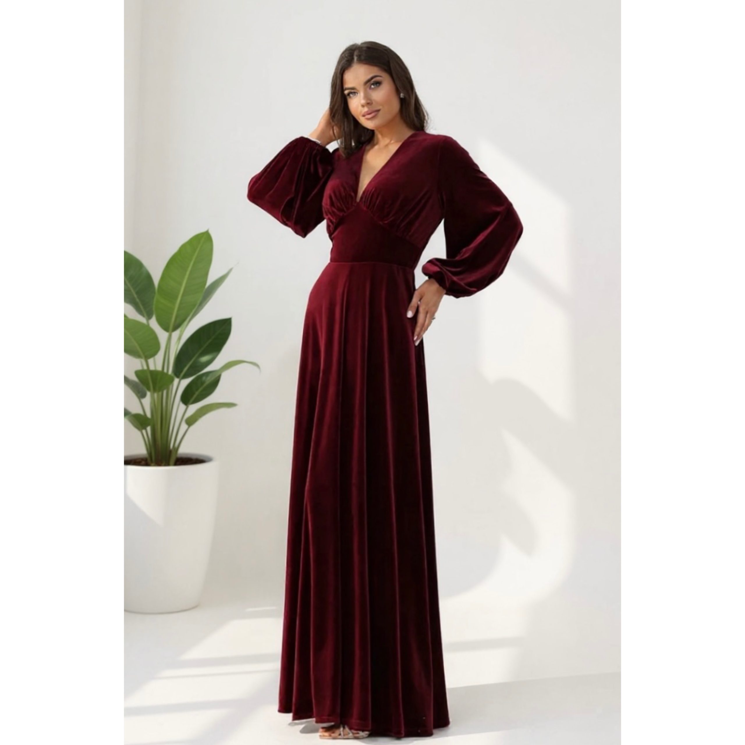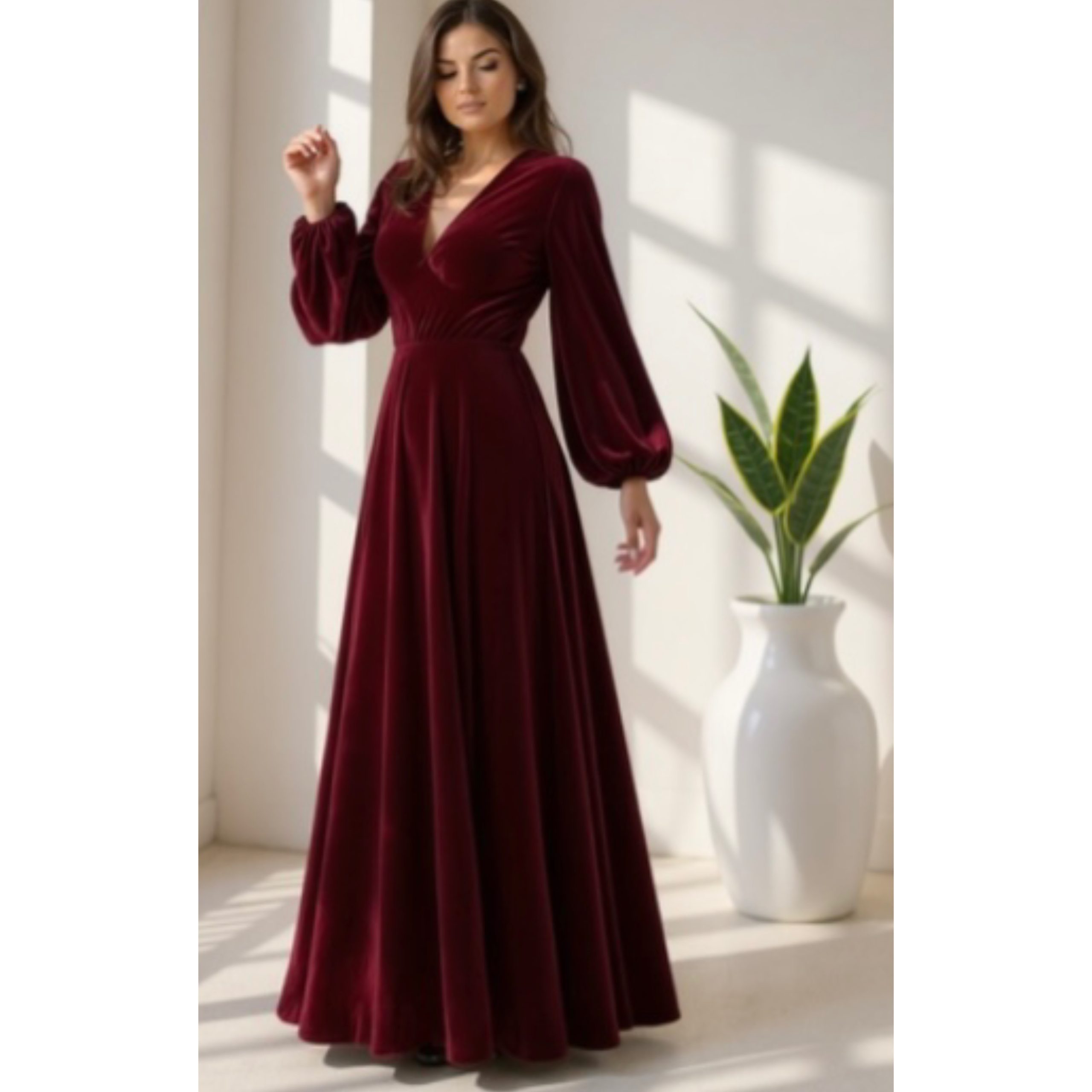 Rochia este confectionata catifea, material plin, elastic. Lungime standard 145 cm.