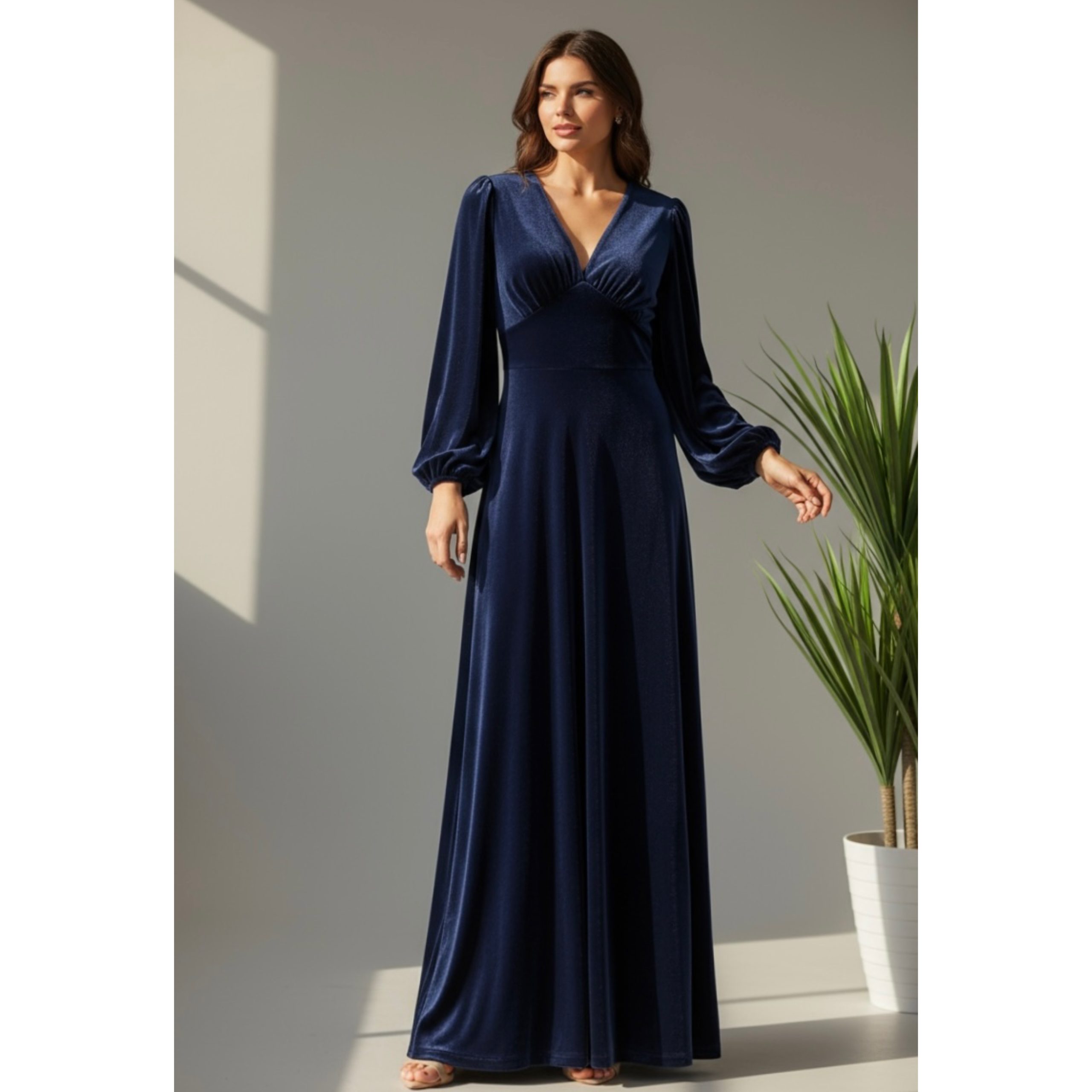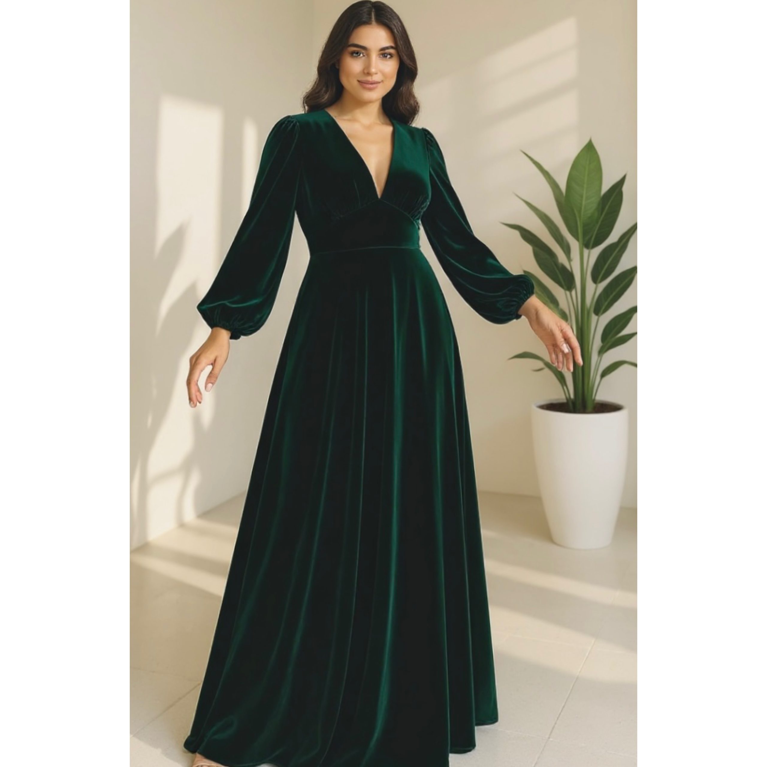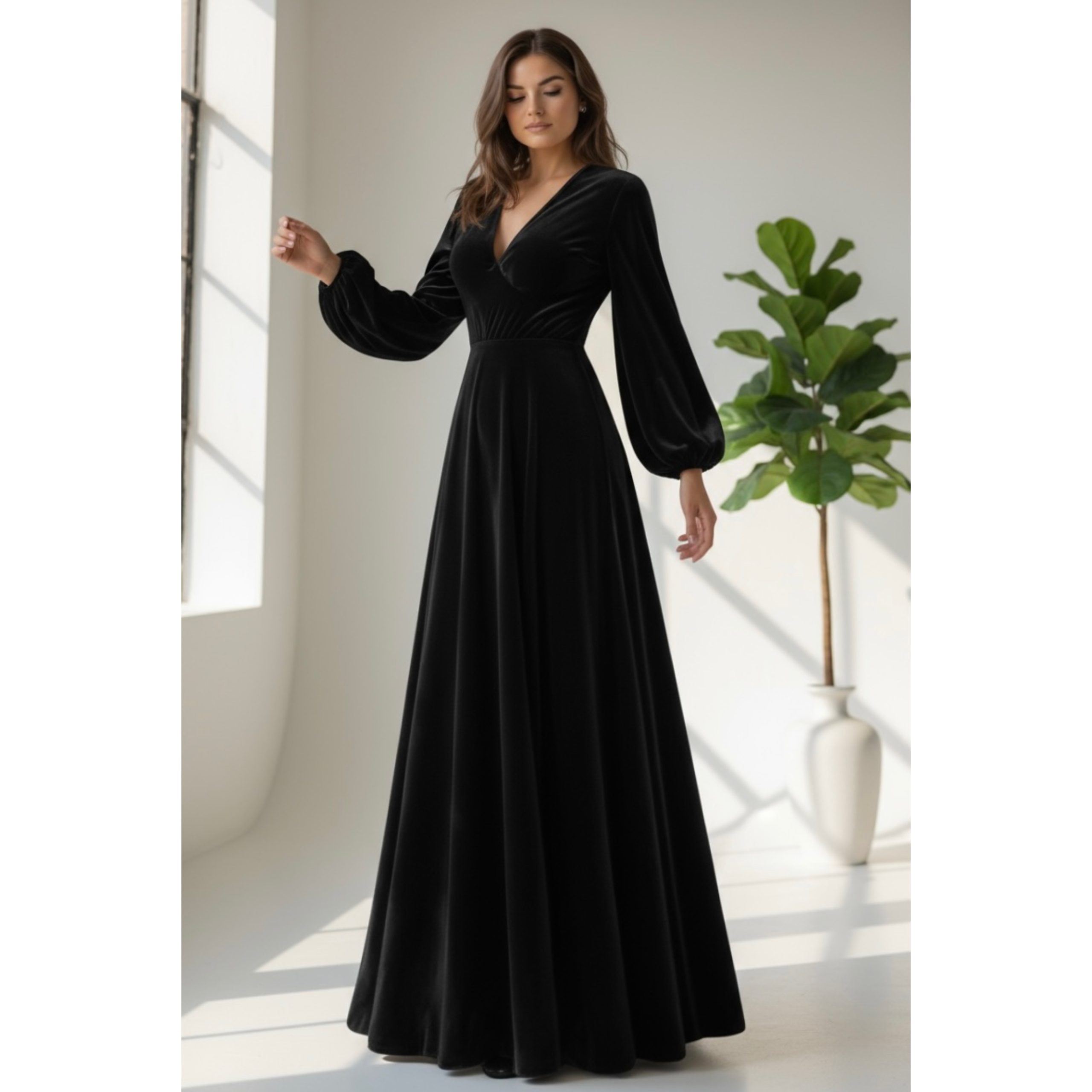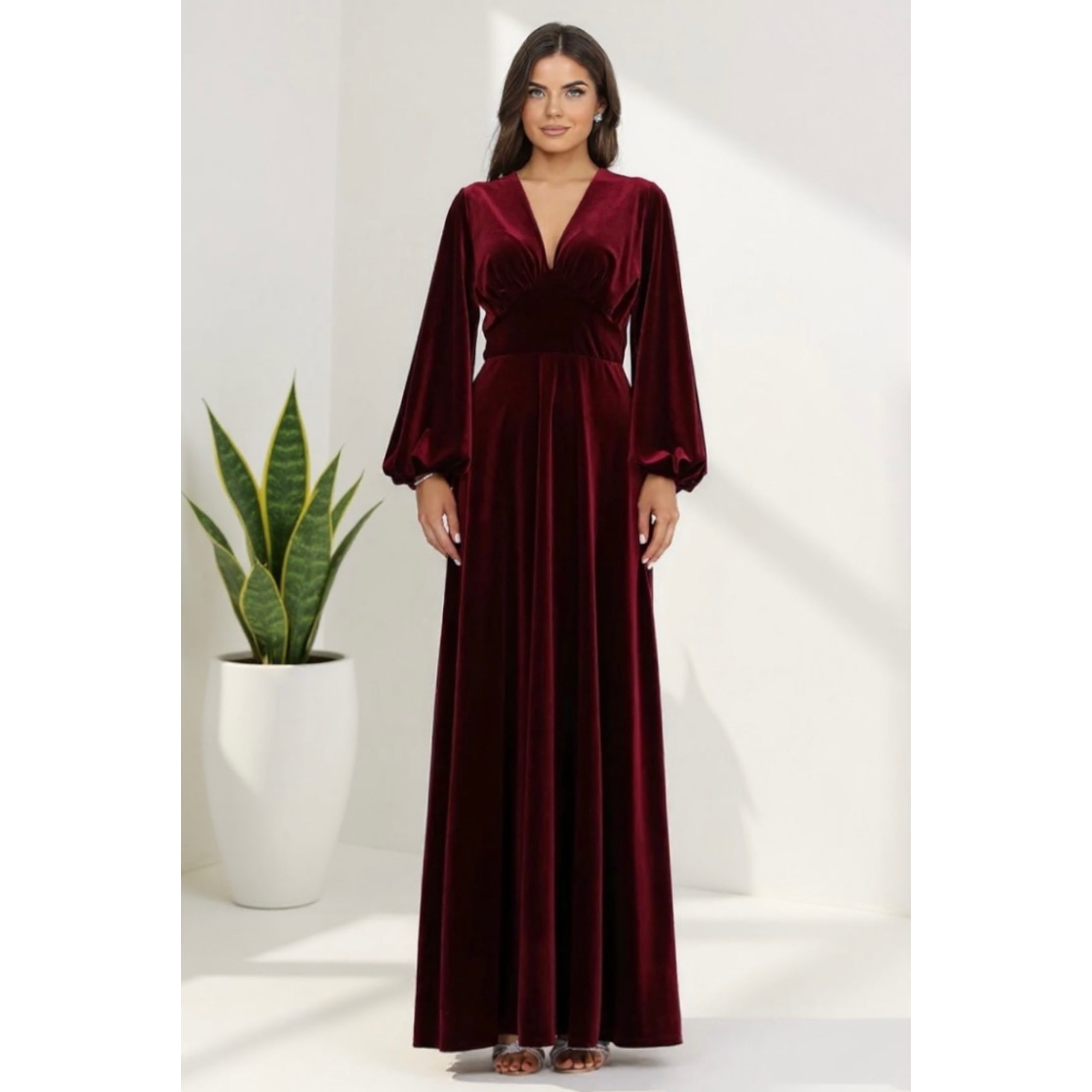 Rochia este confectionata catifea, material plin, elastic. Lungime standard 145 cm.